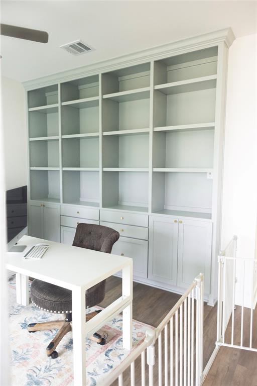 **Motivated Sellers reduced price by $20K** This meticulously cared for David Weekley home is only 5 years old and situated on a premium greenbelt lot, maintained by the HOA. Watch the sunset from the extended brick front porch which includes a handmade front-porch swing. The 8-foot, 6-lite front door welcomes you inside, where the entire first level has low maintenance luxury vinyl floors. A dedicated study with custom built-in shelves, drawers and cabinets offers plenty of storage for work or play. The open-concept living area, surrounded by windows, flows effortlessly into the kitchen, complete with a gas range, crisp white cabinets, granite countertops, and a walk-in pantry. A custom built-in banquette in the dining room doubles as seating and bonus storage. The private backyard includes a covered patio and artifical turf with transferable warranty. A powder bath and light-filled stairway complete the first floor.