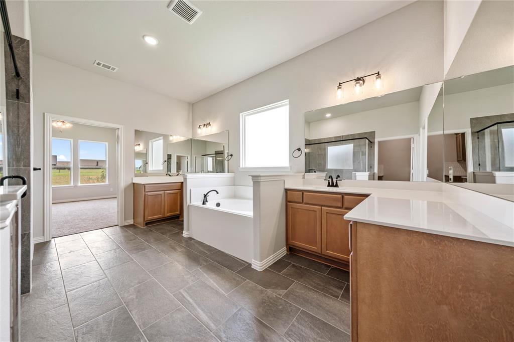 Energy Star Certified home with spray foam insulation! This Magnolia plan has everything! Gorgeous curb appeal with stone accents, not to mention an oversized 2 car garage! This home has a kitchen you will want to entertain in; including huge island, generous amount of 42 inch shaker style saddle stained cabinetry and contrasting Nopal painted cabinets in island, walk in pantry, 3 CM Blizzard Quartz & beautiful backsplash and wood look tile flooring in main areas downstairs. The laundry room is a room in and of itself with plenty more cabinets, counterspace, and connects to the massive primary en suite bathroom that boasts oversized shower, separate vanities and separate walk in closets! Way too many features to list – so please schedule time to see this home soon!