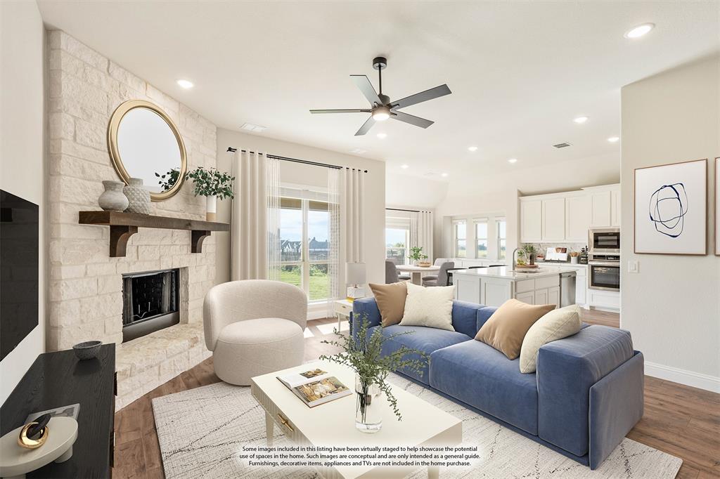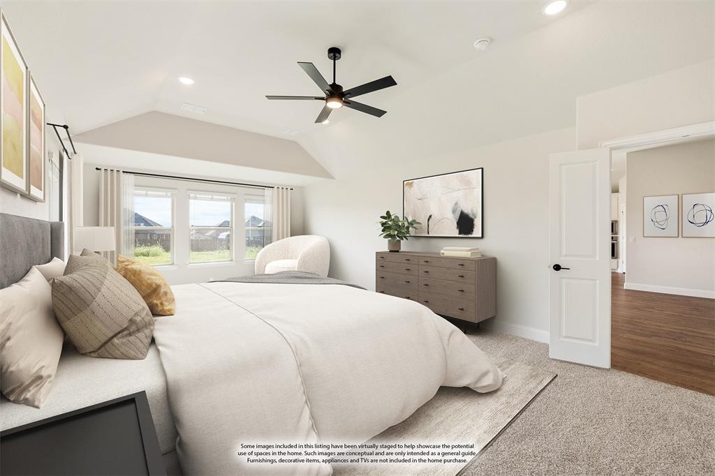 NEW! NEVER LIVED IN. Ready NOW! Introducing the Carolina IV floor plan, a perfect blend of modern elegance and timeless charm. This stunning two-story home, set on a spacious half-acre lot, boasts 4 bedrooms, 3 bathrooms, and a 2.5-car garage. Enjoy the bright Study with glass French doors, a versatile downstairs Formal Dining Room, and an upstairs Game Room for added flexibility. The Covered Patio provides a serene outdoor retreat, while the spacious Media Room is ideal for movie nights and game day gatherings – endless entertainment awaits! Designed with high-end finishes, the home features durable Laminate Wood Tile floors, sleek Painted Shaker-style Cabinets, and a striking Stone Fireplace with a cedar mantel. The Deluxe Kitchen is equipped with quartz countertops, a single-bowl sink, a walk-in pantry, a charming buffet area in the Breakfast Nook, and stainless steel appliances. You'll find ample storage throughout, including generous closets, a dedicated laundry space, and built-in shelving. The Primary Suite is your personal sanctuary, complete with a cozy sitting area, a relaxing soaking tub, and a separate shower. Situated on a peaceful, interior lot, this home is the ideal retreat. Visit Bloomfield at Coyote Crossing today!