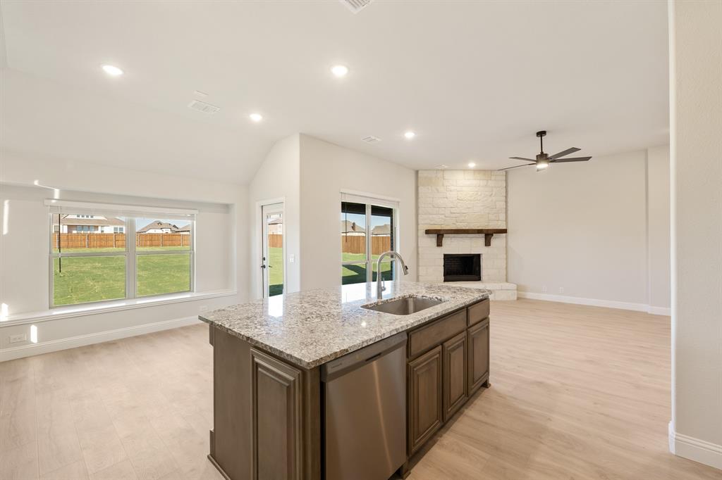NEW! NEVER LIVED IN. Ready September 2025! Bloomfield's highly sought-after Carolina IV plan features 4 generously sized bedrooms and a variety of living spaces, all ready for your personal touch. The open-concept design is perfect for entertaining, with a striking stone-to-ceiling fireplace framed by a cedar mantel in the Family Room, creating a warm and inviting atmosphere. Durable laminate flooring flows through the main areas. The Study, conveniently located off the foyer, offers a quiet work or reading space, while the Formal Dining Room, just beyond, sets the stage for memorable meals. At the heart of the home, the Deluxe Kitchen features a large island with sleek granite countertops, custom upgraded cabinetry, a convenient buffet, and a walk-in pantry. Everyone can enjoy their own space, with a first-floor Primary Suite offering a spa-like ensuite with quartz countertops. Upstairs, you’ll find Bedroom 4 and Bath 3, along with a spacious Game Room and a dedicated Media Room, perfect for movie nights and entertaining. The home also includes a 3-car garage, an 8ft front door, fresh landscaping, and is situated on a tranquil, interior lot. Visit Bloomfield at Coyote Crossing today to learn more!