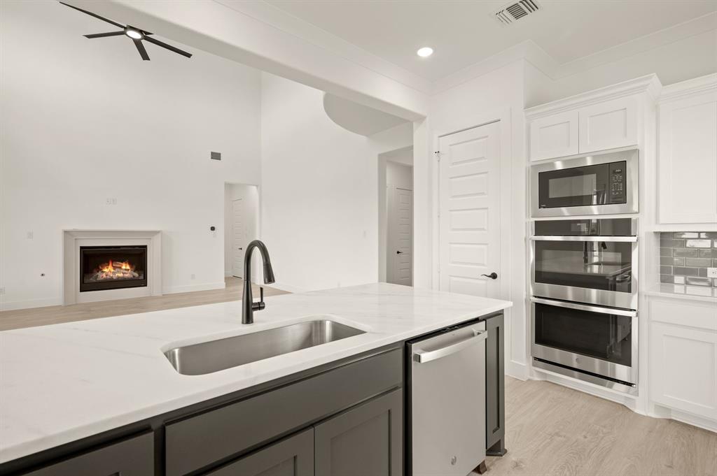 Gourmet Kitchen: Upgraded cabinets and a premium appliance package enhance the kitchen’s elegance and efficiency.
