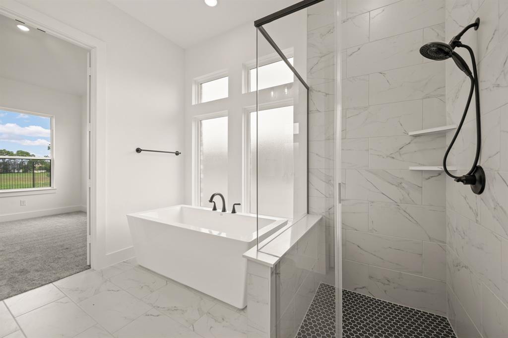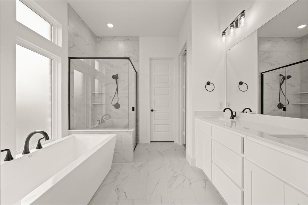 Luxurious Owner’s Suite: Enjoy a spa-like bath with a free-standing tub, separate shower, dual sinks, and a large walk-in closet.