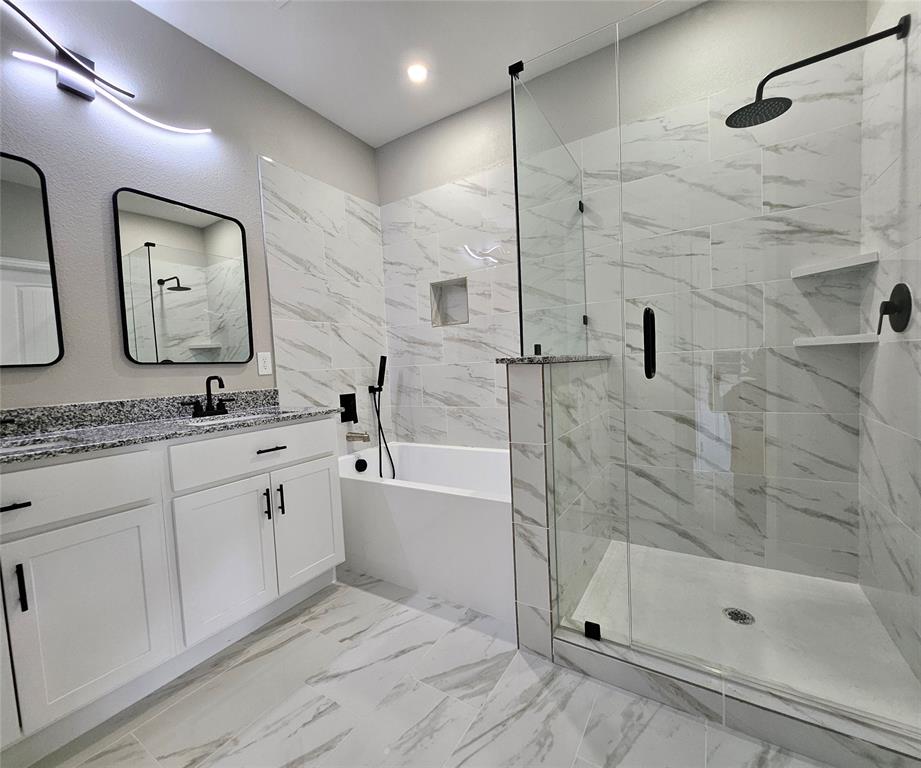 The deluxe kitchen hostile a large center island with plenty of workspace, granite counter tops, new built-in SS appliances, white prefinished cabinets, gorgeous backsplash, and a large pantry.