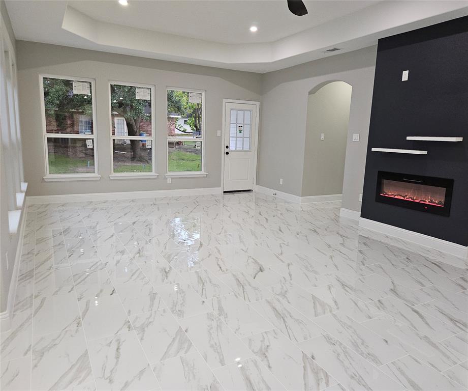 This house is situated on a big lot; it's one story with a two car garage and serious curb appeal with the beautiful brick exterior. The open concept interior flows smoothly from the kitchen to the dinning and living areas, which features a beautiful electric fireplace, and there's plenty of natural light coming from the large low-E Windows throughout the home.