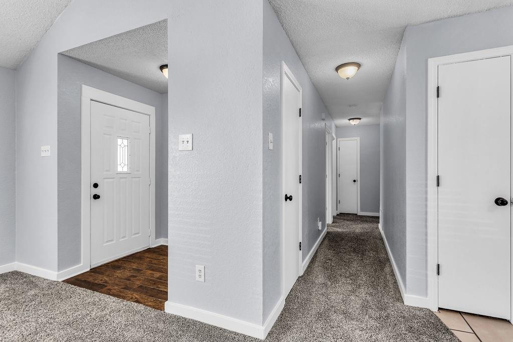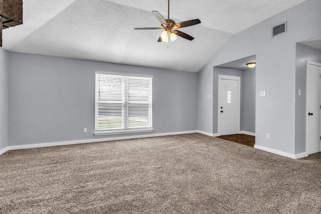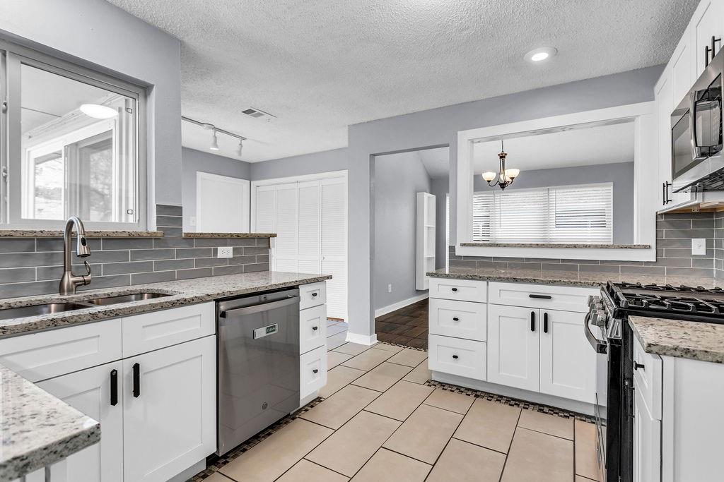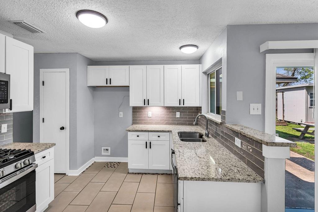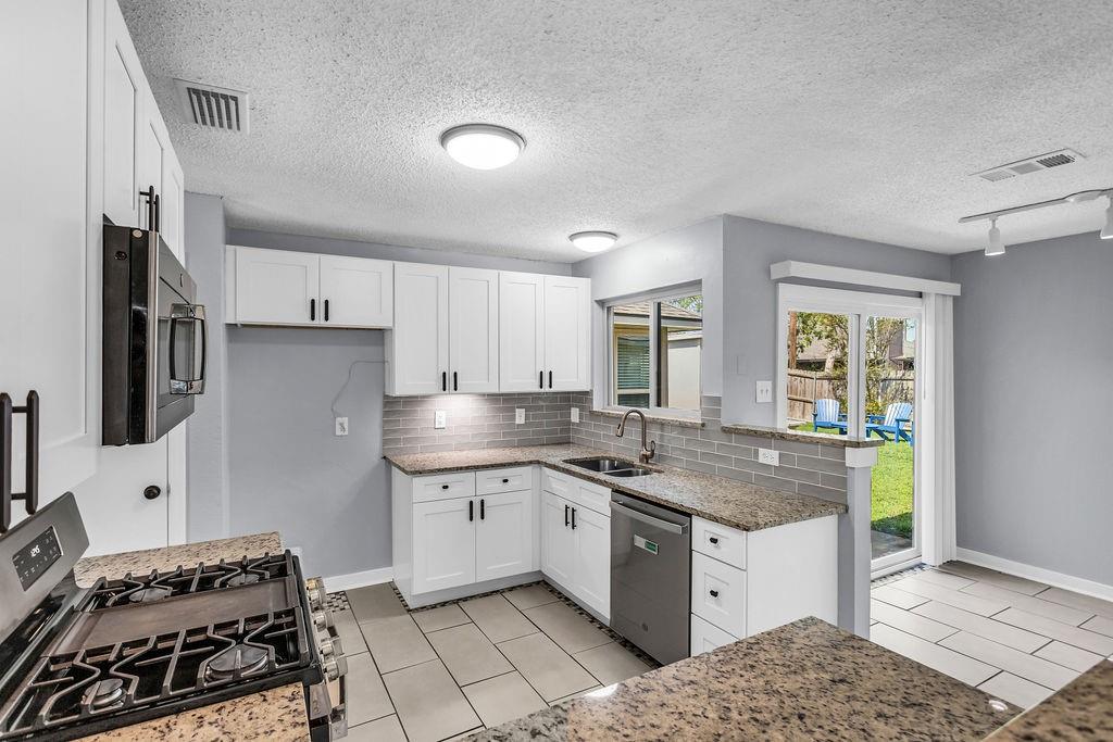 This Darling Updated Home is Waiting for you. Drive up Front Porch Appeal. Relaxing Cool Colors welcomes you into fully fresh New Paint. NEW CARPET JUST INSTALLED! This home has a great sized family room to relax and enjoy your evenings with a focal point wood burning fireplace for cool evenings. Your new kitchen boasts new soft close cabinets and full kitchen update. Newer appliances with gas cooktop and gorgeous Granite Counter tops. New Windows added to this home for excellent Energy Efficiency. Relax in your master with updated master bath. Note your secret storage room or could also be used as safe room! Find time to play in your large grassy backyard including a raised bed garden and a bonus shed that has power for all your playtime tools. Super Cool Garage with new Epoxy Floors, paint and baseboards for luxury car parking. Quiet Garage Door Opener installed. New Roof is 3 years old, additionally new Water Heater in Dec. 2024. Location is closed to lake, take time for an evening stroll. Close to Highway Outlet and near shopping and dining.