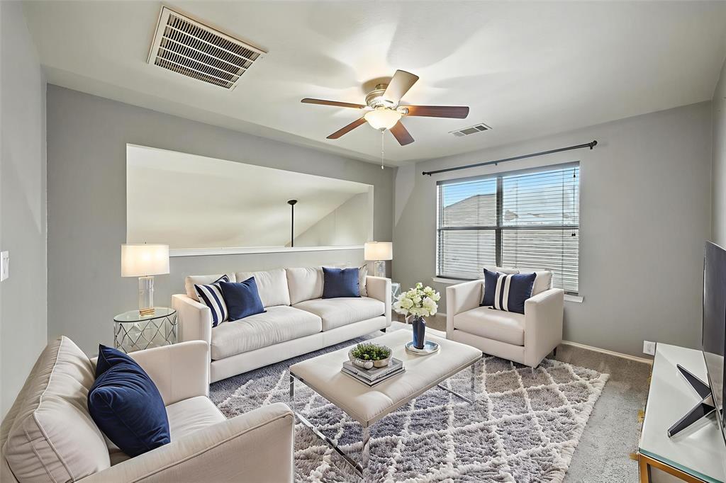 Upstairs, the freshly installed carpet in July 2025 adds softness and style to the additional living spaces. Three well-sized bedrooms share a full bathroom, offering comfort and privacy for family or guests. A versatile flex area upstairs provides room for a playroom, media space, home office, or whatever suits your lifestyle best.