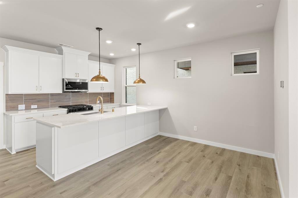 MLS# 20889586 - Built by Grenadier Homes - Ready Now! ~ Discover this contemporary-modern townhouse in the sought-after Ten Mile Creek subdivision of Celina ISD. This residential property, currently under construction with an estimated completion date of 6-27-2025, boasts 1867 sq.ft of total living space with 3 primary bedrooms, 2 full baths, and a half bath. The interior showcases decorative lighting, a double vanity, an eat-in kitchen with a pantry and island, and walk-in closets. It's wired for data and features central heating and air. Carpet and luxury vinyl plank flooring add a touch of elegance. The exterior offers lighting and an outdoor living center. The townhouse includes a 2-car garage.