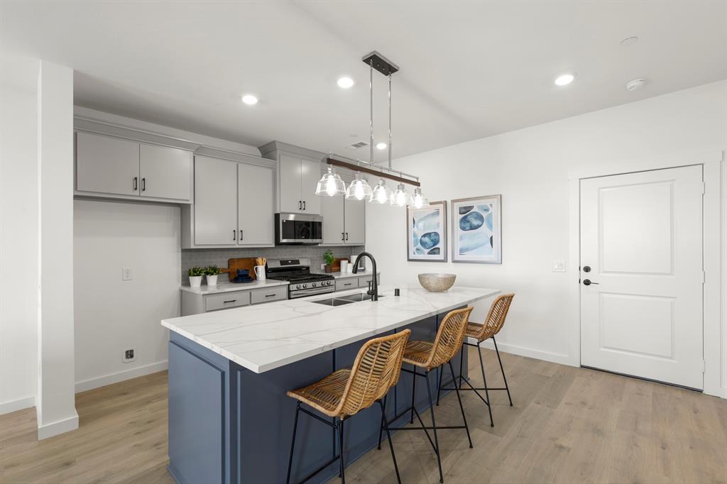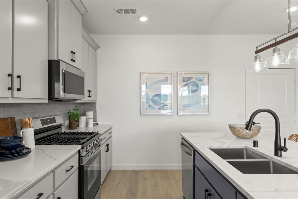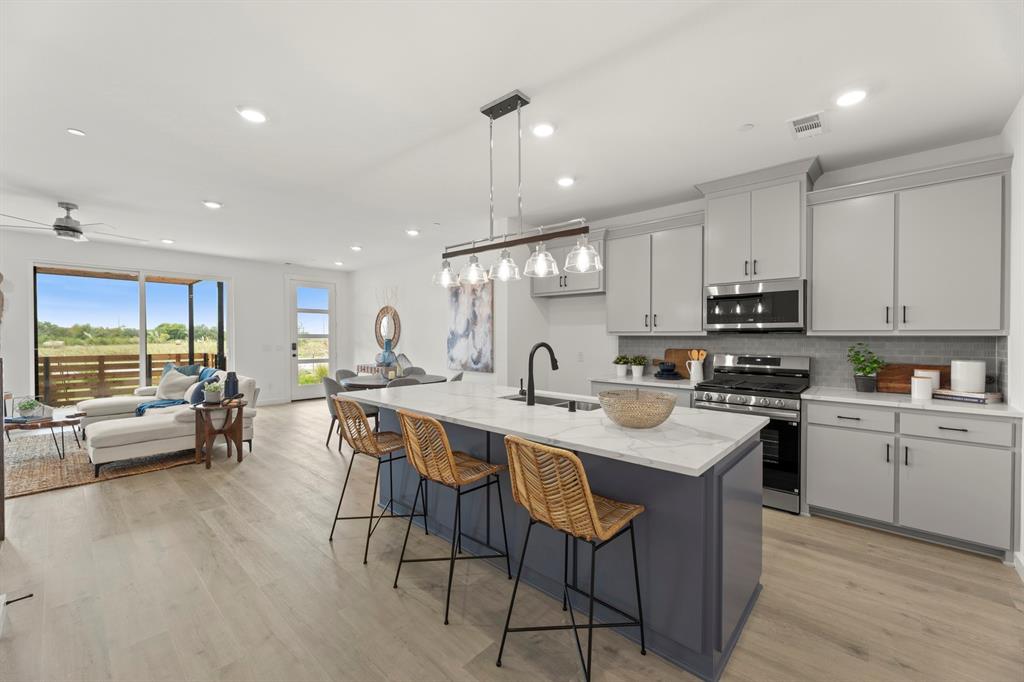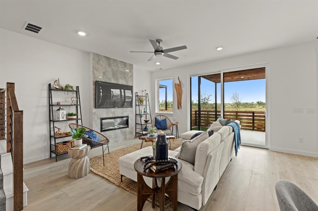 MLS# 20889640 - Built by Grenadier Homes - Ready Now! ~ Immerse yourself in contemporary comfort in this 2025-built, 3-bedroom, 2.5-bathroom townhouse nestled in the Ten Mile Creek subdivision of Celina ISD. Awaiting completion by 6-27-2025, this home boasts modern features such as decorative lighting, a double vanity, an eat-in island kitchen, and a pantry. Each bedroom is offering generous walk-in closets. An electric fireplace adds warmth to the main living area, perfect for cozy evenings. The home also offers a two-car garage, wired data outlets, and a central heating and cooling system. Outdoors, enjoy the lighting and outdoor living center. You'll appreciate the luxury vinyl plank flooring, slab foundation, and shingle roofing. Don't miss this opportunity to experience modern living at its best in the Celina ISD.