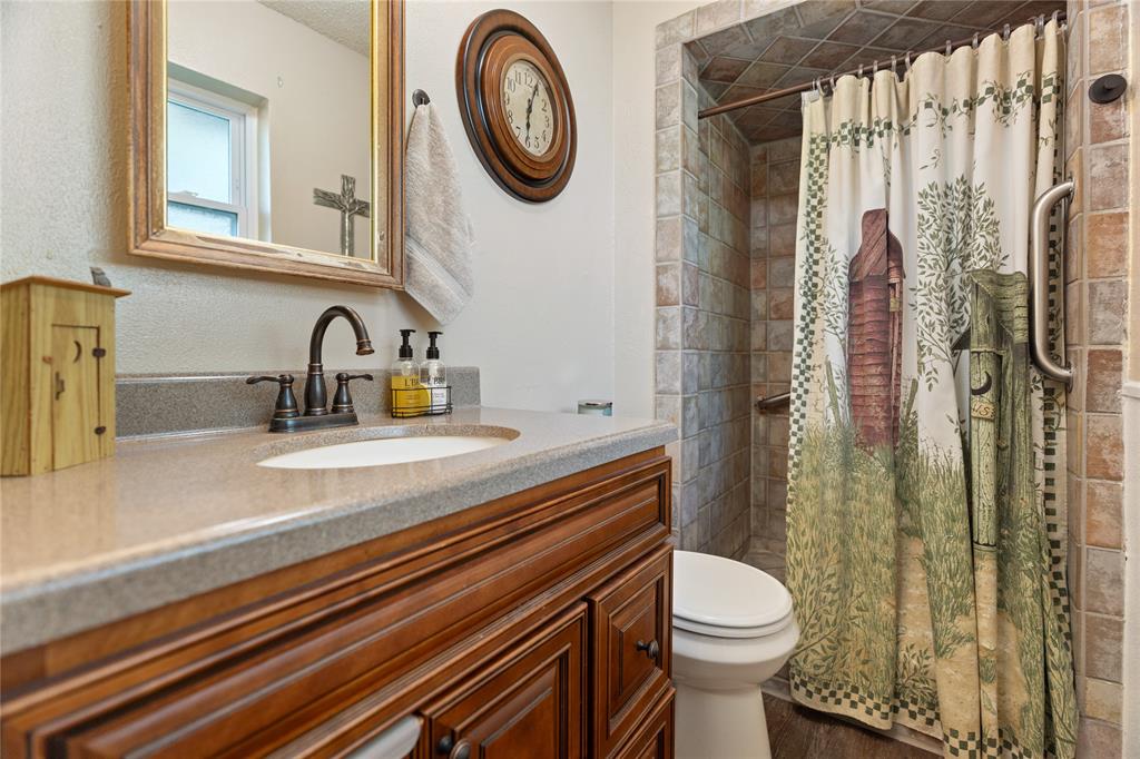 * PRICE REDUCED * MOTIVATED SELLER * Welcome to this charming home with warmth and character, where rustic charm meets modern convenience located in town. This single-story home offers a cozy yet spacious layout with three comfortable bedrooms, two full baths, and a converted garage that’s an additional 420 sqft of living space if wanted. *MAJOR UPGRADES* to the home included, main bathroom renovation with custom tile design and granite countertop, 1 year old Roof, New Vinyl Windows and Sliding Patio Door, Water Heater, Ceiling Fans, Carpet in Livingroom, Electrical Panel, Solar System installed April of 2022 with a monthly payment of $183. and the buyback program your electric bills can be at zero. With a full price offer this great investment will be paid off for the buyer. Whether you're rocking in the chairs on the front porch, relaxing on the covered rear patio, or enjoying the newly expanded converted living area, this home is move-in ready. Upon entering the home, you’ll be greeted by the living room features an inviting, cozy atmosphere, with large windows that allow natural light to pour in and offer views of the front porch. The neutral-colored walls, combined with carpet and durable laminate flooring, create a comfortable and easy-to-maintain living space. The living room is the heart of the home, offering a perfect area for family gatherings, movie nights, or simply relaxing after a long day. It’s simple, yet elegant design allows you to personalize the space with your own décor while maintaining the rustic warmth that defines the home’s charm. The kitchen is the perfect blend of practicality and warmth, featuring classic wood cabinetry with generous counter space, The layout is designed for ease of use, with a large sink overlooking the backyard and huge walk-in pantry in the laundry room. Shed is wired for 220v and RV plug. Just minutes from Beautiful Lake Whitney!