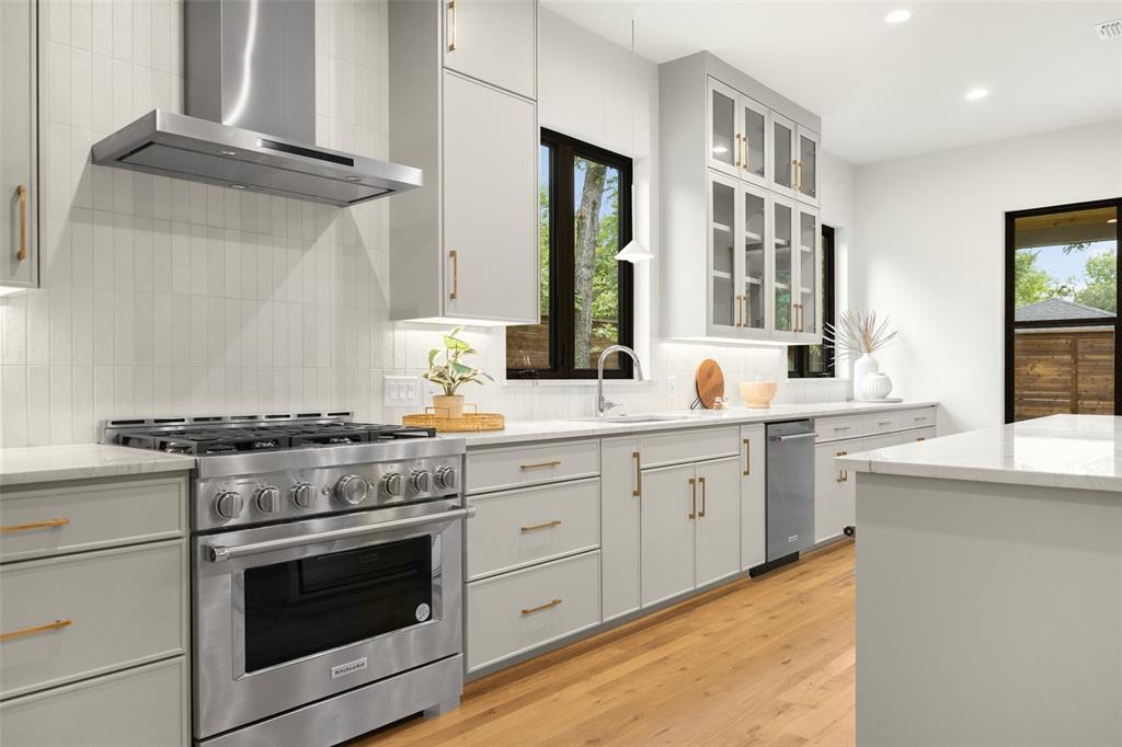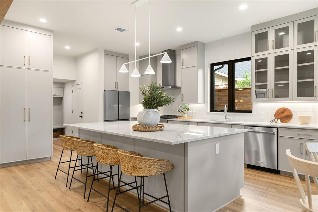 Stunning New Construction by 5West Homes in Sought-After Old Lake Highlands! Just steps from Hexter Elementary and within walking distance to White Rock Lake, this beautifully designed 4-bedroom, 4-bath home offers a perfect blend of modern elegance and functional living. The open floor plan features a spacious living area with a cozy fireplace, a dining room with a striking built-in bar, and a charming reading nook with built-in shelves—all seamlessly connected to an inviting outdoor living space.