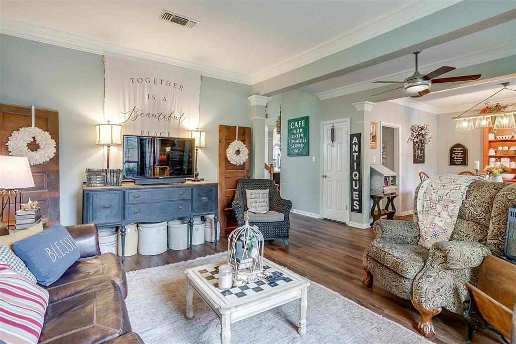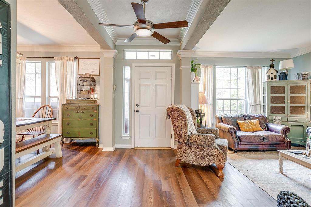 The home's layout is both functional and welcoming, featuring not one, but two inviting living rooms. The back living room is perfect for cozy evenings by the fireplace, creating an ambiance that's both warm and relaxing and is open to the kitchen, making it an ideal space for social gatherings and family interaction. This area also opens directly to the backyard, offering easy transition to outdoor living. The backyard is perfect for grilling and entertaining, whether you're hosting a barbecue or enjoying a quiet evening under the stars.