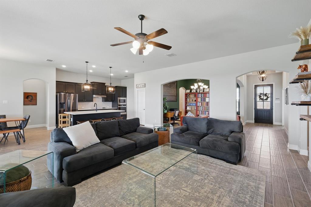 Nestled on a sprawling half-acre lot in the thriving Coyote Crossing community, this stunning 3-bedroom, 2.5-bathroom single-story home offers the perfect blend of comfort, style, and functionality. Boasting an impressive 2,555 square feet of living space, this residence is a true gem.As you step inside, you'll be captivated by the open and inviting floor plan, which seamlessly flows from the generous living areas to the well-appointed kitchen and dining spaces. The expansive study could easily double as a fourth bedroom, providing versatility to suit your needs.The home's three bedrooms offer ample space and privacy, while the two-and-a-half bathrooms ensure convenience and comfort for the whole family. The impressive two-car garage provides secure parking and ample storage.But the true highlight of this property is the amazing brand new extended, covered patio and outdoor grill area. Imagine hosting unforgettable gatherings or simply relaxing under the stars, surrounded by the expansive backyard waiting to be transformed into your dream oasis. This exceptional home in the Coyote Crossing neighborhood presents a rare opportunity to own a truly remarkable property in a thriving and growing community. Don't miss your chance to make this your dream home.