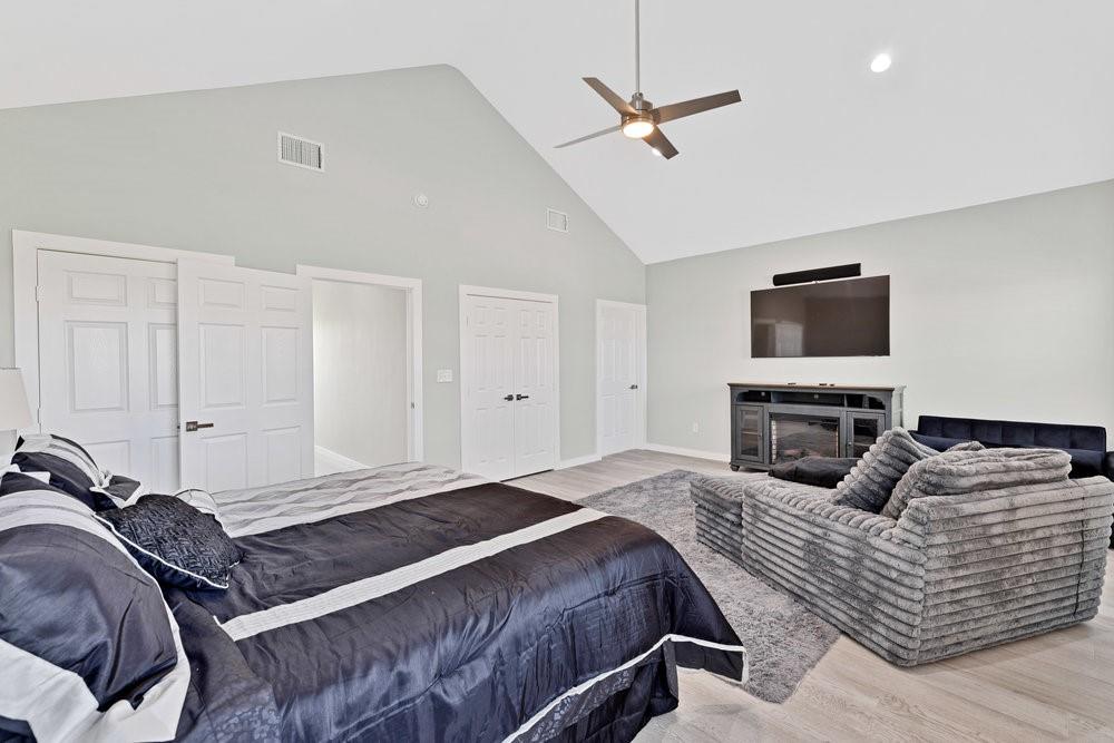 The spacious second-floor master bedroom feels like your own private resort, complete with an oversized balcony where you can sip your morning coffee and enjoy peaceful, sweeping views of the surrounding landscape. It’s the ultimate spot to unwind and recharge.