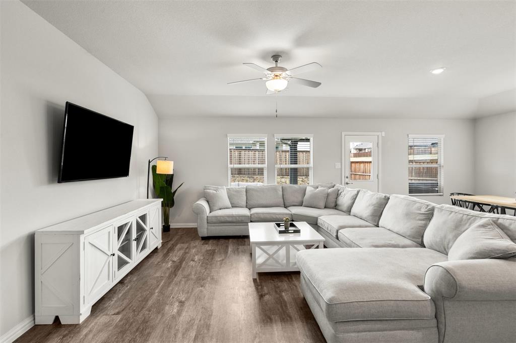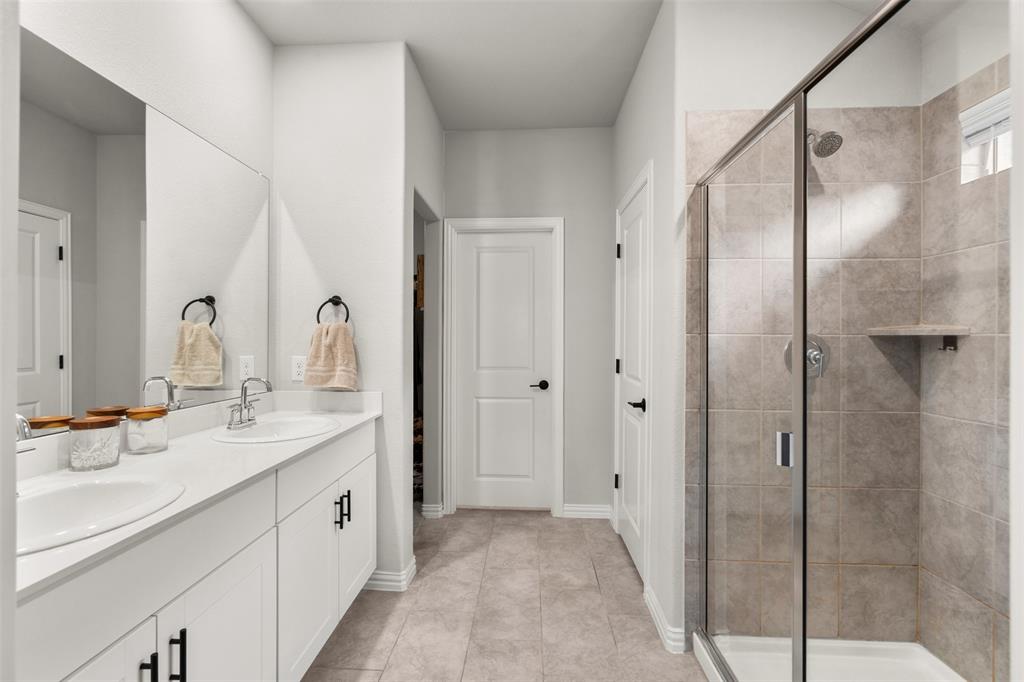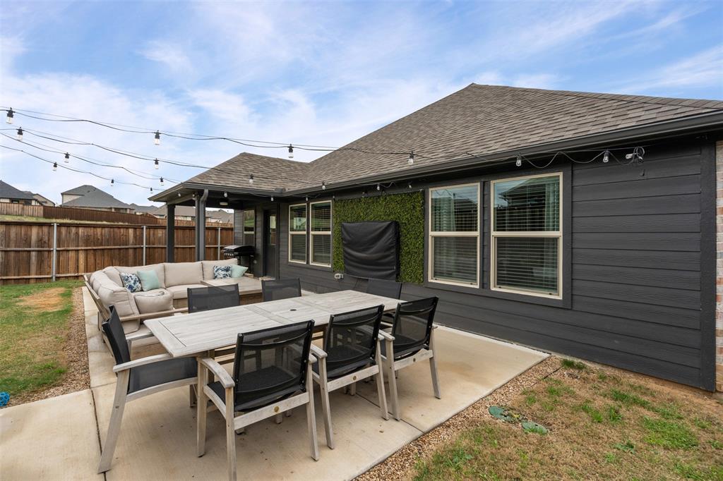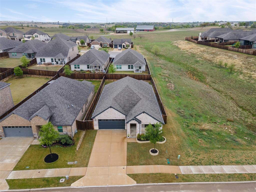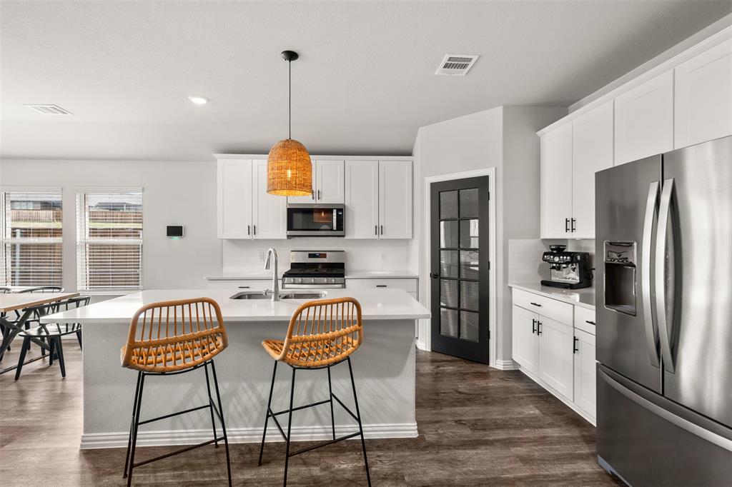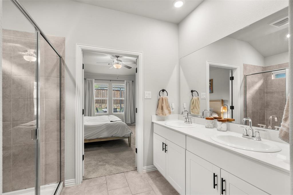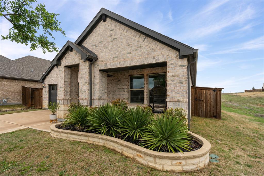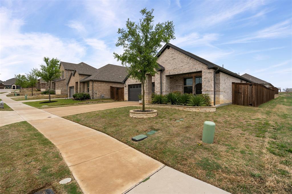 Welcome to 10420 Colina Drive! This stunning 4-bedroom, 3-bathroom home offers 2,059 sq. ft. of modern luxury in the sought-after Ventana community. Located on a green belt and adjacent to a new trail winding its way through the community, this home has something for everyone. The open floor plan features elegant luxury vinyl plank flooring throughout, creating a seamless flow between living spaces. The chef-inspired kitchen boasts beautiful white quartz countertops, a breakfast bar, sleek stainless-steel appliances, and ample storage with a walk-in pantry. A custom dry bar-comfort station with a beverage cooler and stylish wallpaper adds a unique touch of convenience and charm. The primary suite offers a spa-like bathroom with dual vanities, a separate tub, a walk-in shower, and a massive closet. A second guest suite with its own private en-suite bathroom provides another private retreat for guests. Two additional bedrooms offer flexibility and a place for a home office. Step outside to the sprawling extended covered patio, prewired for a wall-mounted TV - ideal for outdoor entertainment and relaxing evenings. Designed with energy-efficient technology, this home enhances daily living while minimizing environmental impact and lowering utility bills. Located just minutes from downtown Fort Worth, Lockheed, and TCU, Ventana offers outstanding amenities, including a new on-site elementary school, two dog parks, a playground, an amenity center, miles of scenic walking trails, and two resort-style community pools. Thoughtfully maintained and move-in ready, this home is a must-see!