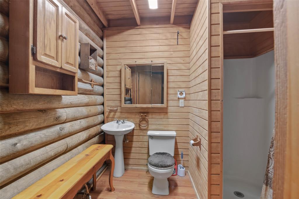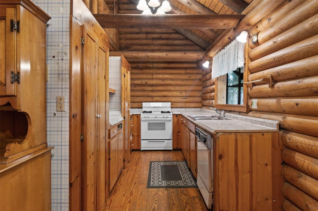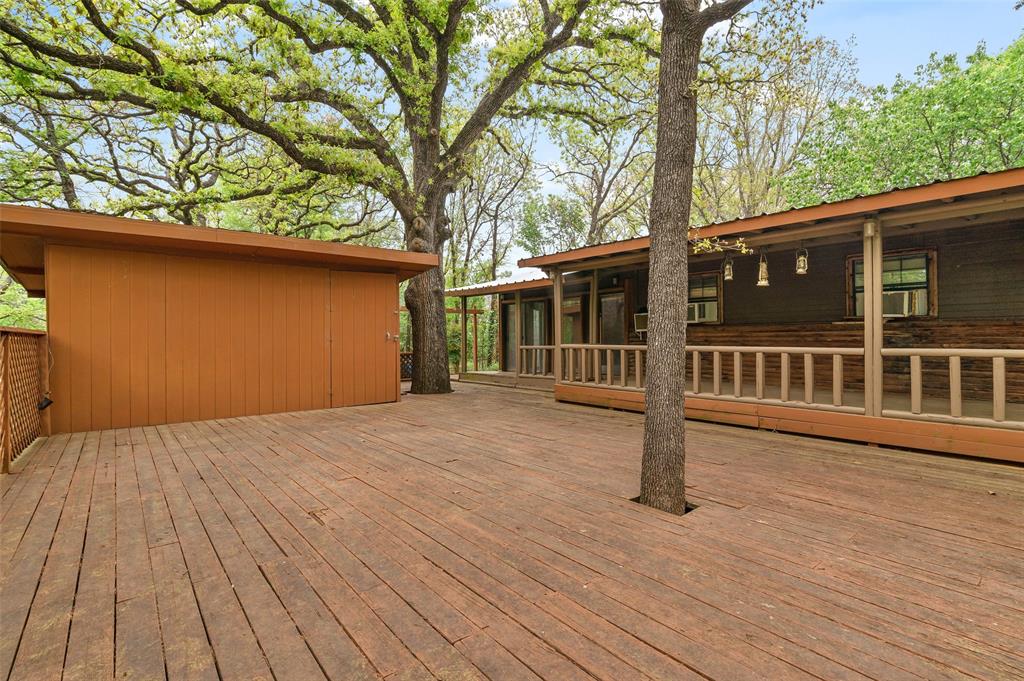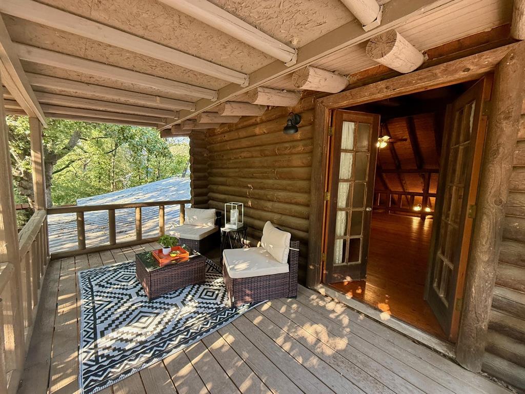 Nestled on a serene 1 acre heavily treed lot, this 2-bedroom, 3.5 bath log cabin with recently completed electrical rewiring offers an endless amount of rustic charm & incredible potential. Located in the desirable Crescent Oaks lakeside community with a boat ramp, pool & park, this property presents a peaceful retreat with the convenience of being close to city amenities. While this home is full of character, it is ready for a new homeowner to bring it to its full potential. Whether you're looking to restore its original charm or create something uniquely your own, the possibilities are endless. The electrical has been brought to code and a $10k concession is being offered. Inside you'll find a main lvg room, 2nd spacious lvg area, multiple flex spaces to meet your specific needs, a dining space, & a cozy loft with a half bath & French doors leading to a covered balcony, providing a relaxing outdoor space to sit & take in the peaceful views. The private study & game room, located just off one bedroom, offers the perfect opportunity for a home office, hobby space, or even a potential private mother-in-law suite. The kitchen sits just off the main lvg area, featuring soaring wood-beamed ceilings that exude warmth & charm. The primary bedroom, split from the second bedroom, boasts an en-suite bath & walk-in closet. This home's layout & unique features provide a wonderful foundation for turning it into your dream home! Upon pulling into the drive, you'll be embraced by mature trees & the sounds of nature. You won't be lacking for outdoor seating space with both front & back covered porches, an outdoor deck perfect for entertaining, & a shed for added convenience. The circle drive & two-car garage offer plenty of parking & storage options. This Oak Point log cabin is truly a rare find with a ton of promise! Whether you envision it as a weekend getaway or a full-time residence you'll have instant equity for your personal touches with a 2024 appraised value of 500K!