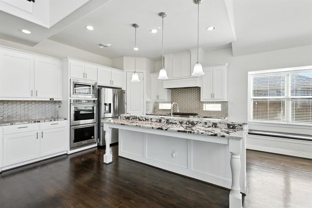 Experience luxury living in this breathtaking home in Mira Lagos! Nestled on a prime greenbelt lot, this stunning three-story residence is just steps from the community pool, playground, and miles of picturesque trails, all within the highly acclaimed Mansfield ISD. As a bonus, enjoy a fully paid for solar panel system which will keep your electric bill low year-round!