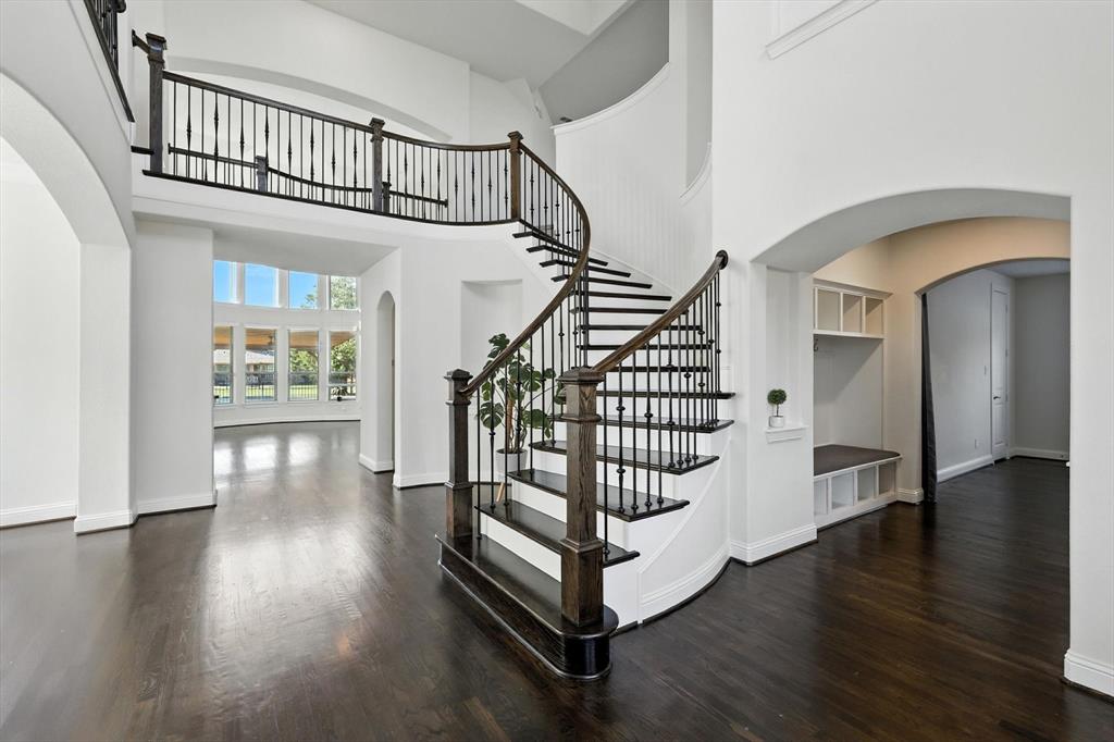 Step through elegant double front doors into a thoughtfully designed home featuring dual master suites, a private study, a soaring vaulted family room, a game room, a media room with a snack bar, versatile third-floor bonus space and privacy for all occupants with a split bedroom setup.