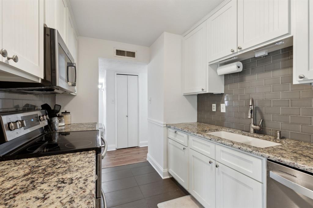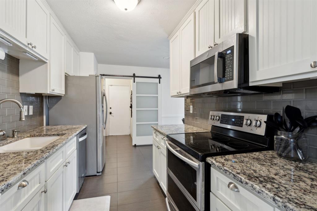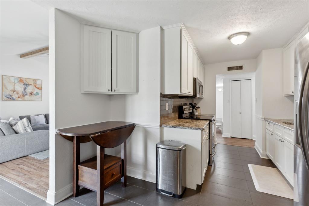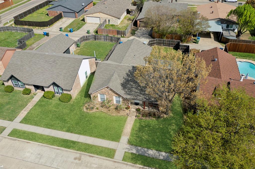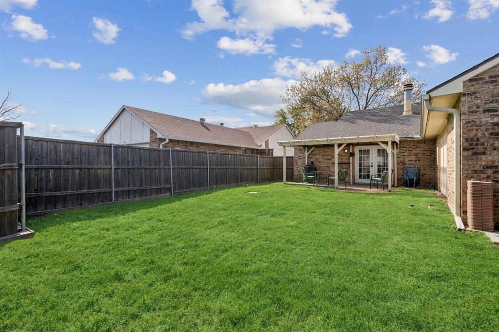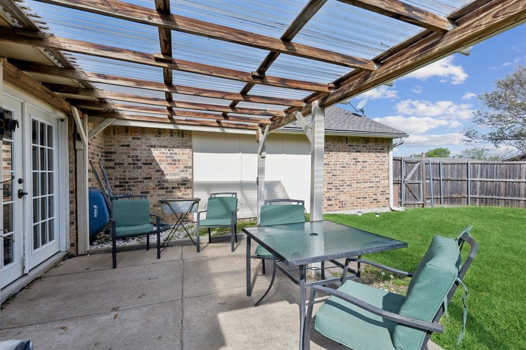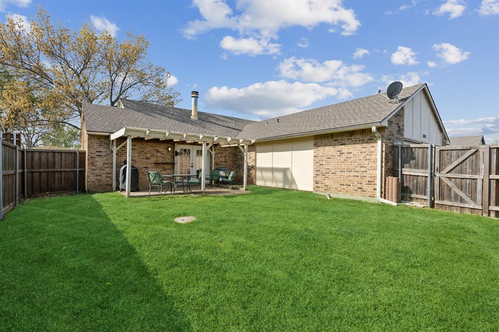 Nestled in the heart of The Colony, this charming 3-bedroom, 2-bathroom home offers a spacious and inviting floor plan. The bright living area features vaulted ceilings and seamlessly flows into the dining space, both offering picturesque outdoor views. The beautifully updated kitchen boasts granite countertops, a glass subway tile backsplash, and custom 42-inch white cabinetry, creating a stylish and functional space.
