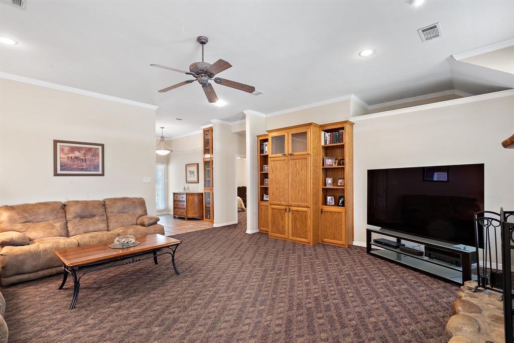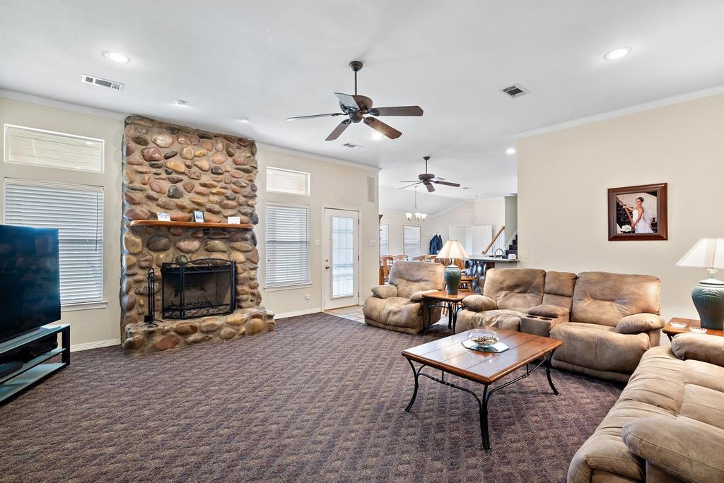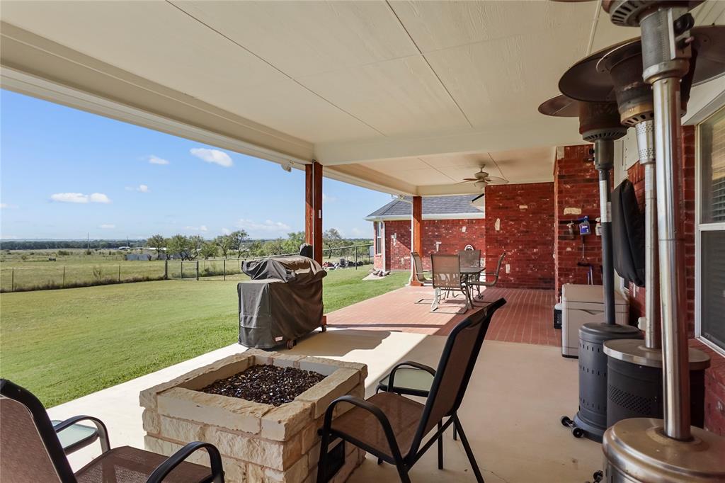 NEW Roof prior to closing!!! 2 NEW hot water heaters just installed August 2025. Welcome to Your Private Oasis with Panoramic Views in Brock ISD – No HOA! Nestled on a tranquil 2-acre lot, this spacious home offers unparalleled privacy and sweeping, unobstructed views that stretch for miles. Located in the highly sought-after Brock Independent School District and with no HOA, this property combines freedom, functionality, and breathtaking natural beauty. Step inside to a warm and inviting living room centered around a stunning river rock fireplace — the perfect spot to unwind after a long day. The expansive floor plan includes a large game room, ideal for entertaining family and friends. Each bedroom enjoys direct access to its own full bathroom, providing privacy and convenience for everyone. A guest half-bath adds extra functionality. The well-appointed kitchen features: Ample cabinetry for all your storage needs, a central island, double oven and built-in microwave, dining area that captures the scenic landscape through picturesque windows. Upstairs, a versatile loft space offers endless possibilities — use it as a home office, extra bedroom, or additional storage. Step outside to your oversized covered patio, complete with a built-in fire pit — an ideal setting for cozy evenings or outdoor gatherings. With covered parking for five vehicles, plus extra space for RVs, boats, and recreational toys, this property is designed to accommodate your lifestyle with ease.