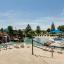 Enjoy year round entertainment in the lush backyard, featuring a covered patio for outdoor relaxation.