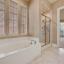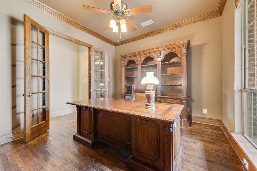 The main level features a spacious master retreat with a spa inspired bath, complete with a garden tub, separate shower, dual vanities, and his and her walk in closets. An elegant study with solid hardwood floors, wood accented crown molding, and French doors adds sophistication and function.