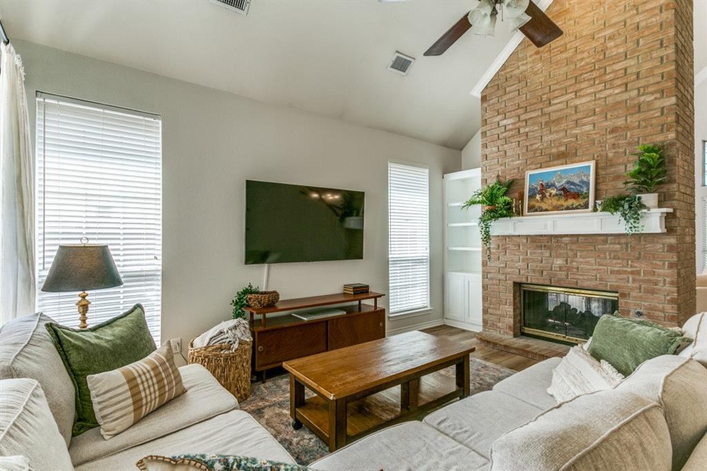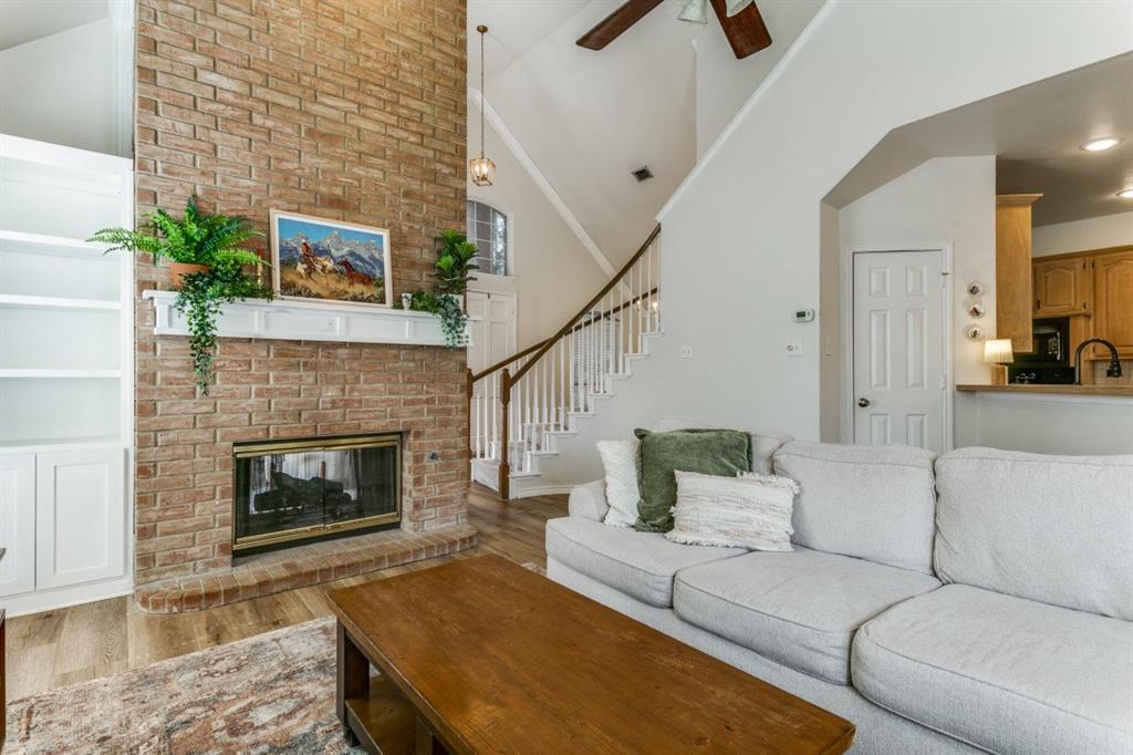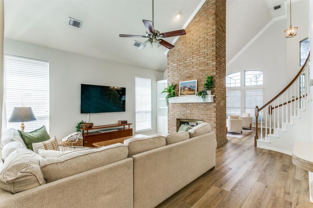 Home is on a peaceful cul-de-sac in an established neighborhood. Mature trees surrounding the neighborhood provide shade and beauty. This home offers an open living space you will fall in love with! Features include natural light-filled open layout, double-sided gas fireplace, vaulted ceilings, new floors throughout the house, new AC unit upstairs (installed June 2024), and new flooring throughout the home.