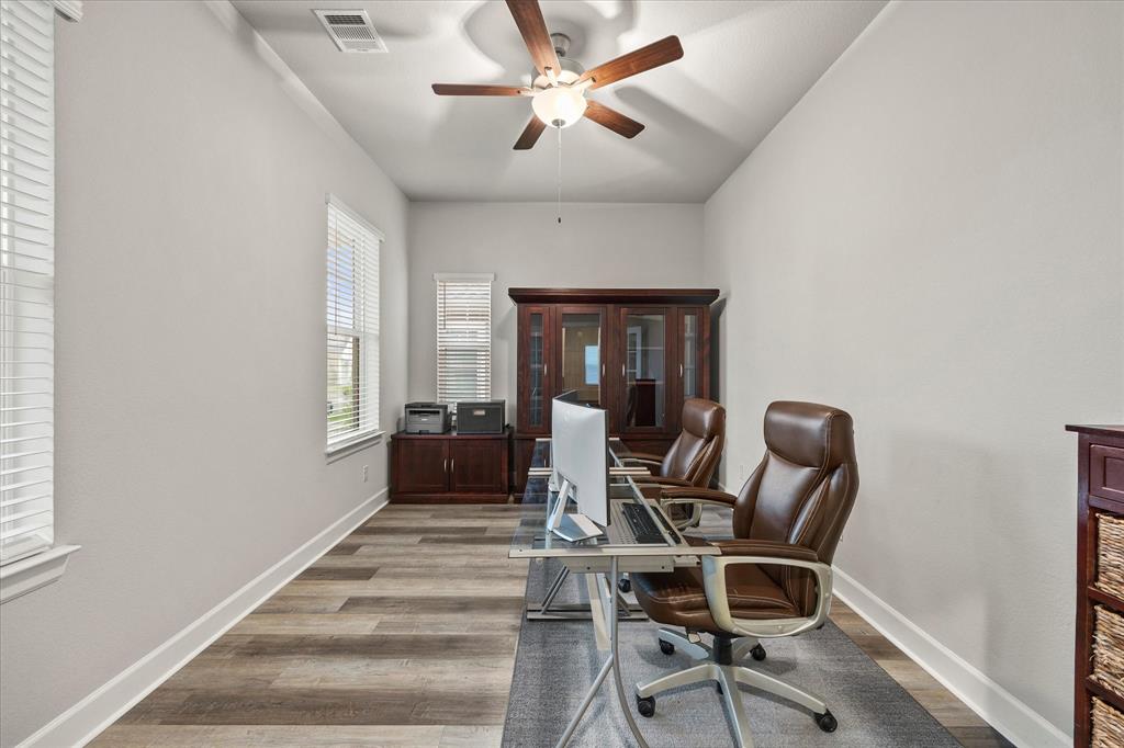 Charm exudes from this meticulously maintained mission-style home, where a welcoming veranda-style porch invites you in, and lushly landscaped grounds enhance its incredible curb appeal. Inside, an open floor plan showcases a chef’s dream kitchen, complete with a large center island, abundant cabinetry, ample counter space, and stainless steel appliances—all seamlessly flowing into a spacious family room highlighted by a gorgeous fireplace. The kitchen also opens to a dining area, perfect for hosting family gatherings. The private master suite offers a spa-style master bath, creating a serene retreat. Two well-appointed auxiliary bedrooms include generous closet space. Working from home is a pleasure in the dedicated office-study, featuring French doors for privacy. An expansive second living area provides versatile space, ideal for a game room, playroom, or second office. The three-car garage ensures plenty of storage and parking space, while the expansive covered patio overlooks fenced backyard, perfect for outdoor entertaining. This neighborhood offers jogging paths, a pool and pond! Close to George Bush for easy access to the metroplex. Don’t miss the chance to call this stunning home yours!