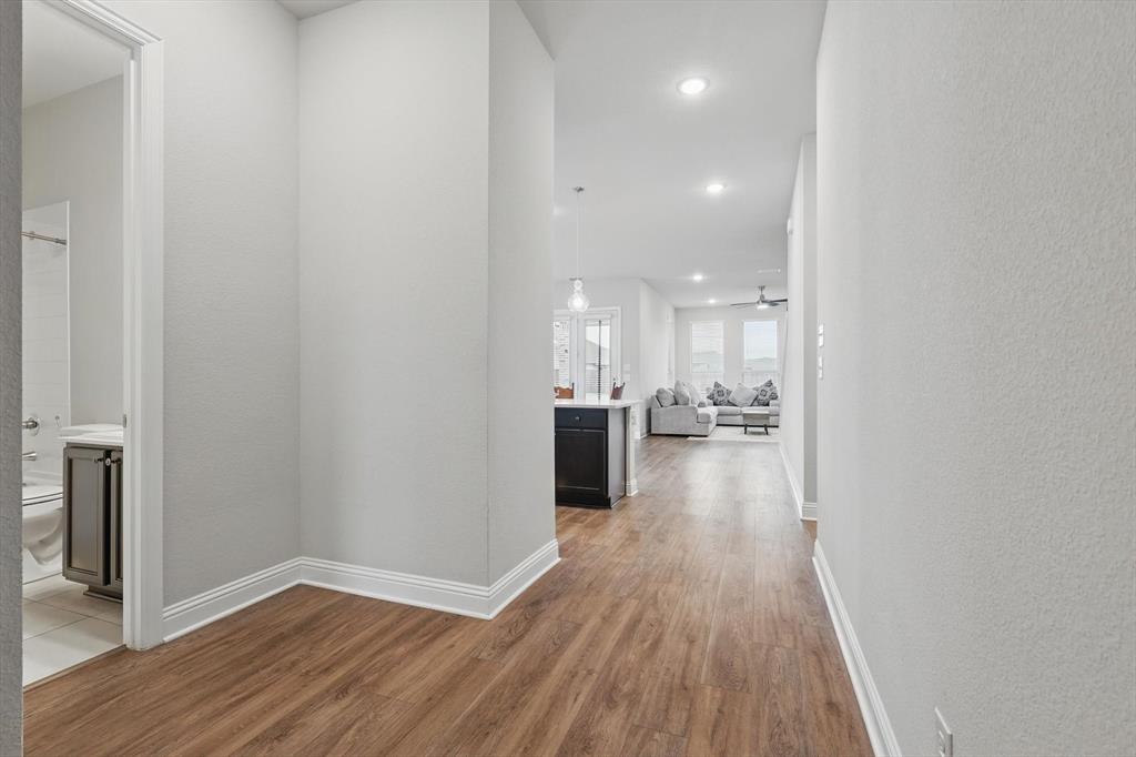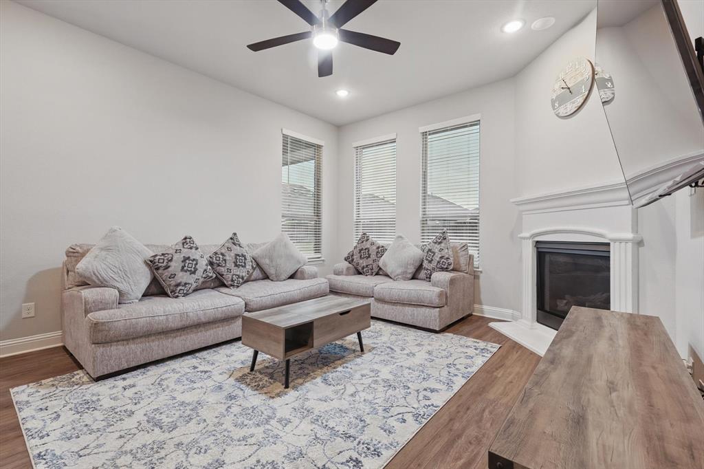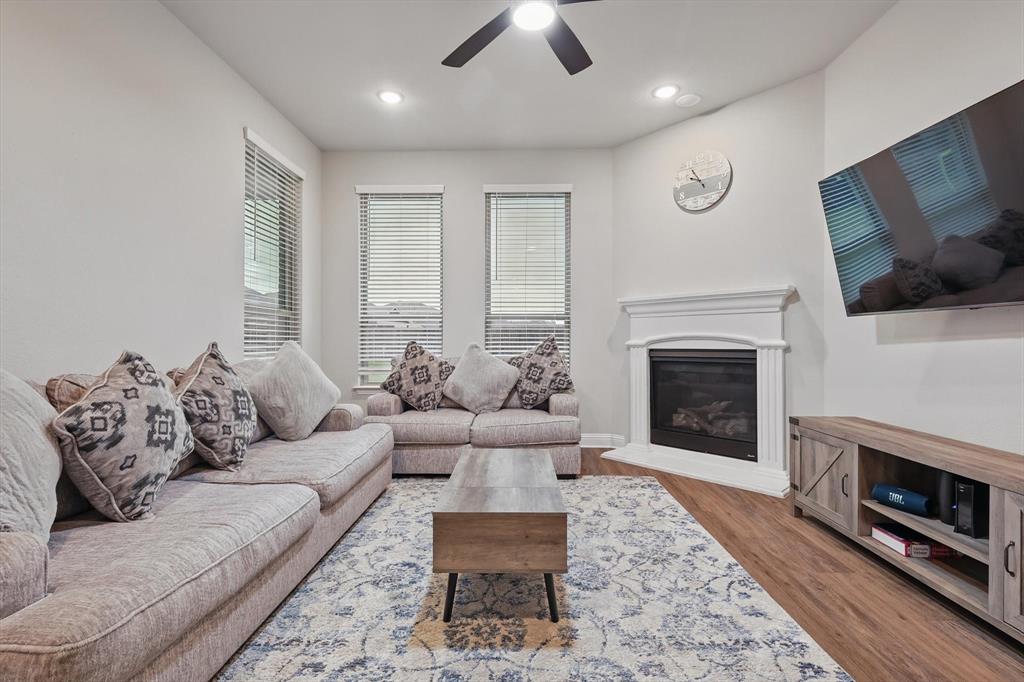 Nestled on one of the largest lots in the highly sought-after Bozman Farms community, this two-story brick home is located in a peaceful cul-de-sac and is within the top-rated Wylie ISD. Neighborhood surrounded by picturesque scenic views, this home offers a serene retreat with impressive community amenities. The open-concept layout is perfect for modern living, featuring beautiful luxury vinyl plank flooring throughout the main living areas. The spacious living room centers around a stone gas fireplace and large windows that provide a gorgeous view of the backyard.