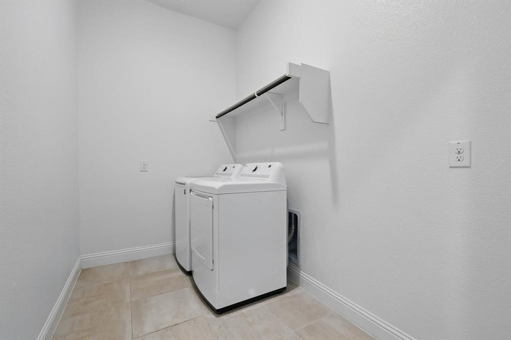 A large laundry room provides plenty of space for convenience and storage. Outside, enjoy a huge private, fenced-in backyard with a covered patio and plenty of space for a pool or outdoor entertainment.
