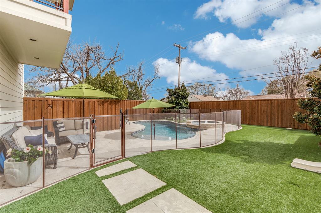 Rare & Stunning 1945 Two-Story Home with Modern Upgrades and a Backyard Oasis! This rare original two-story home, built in 1945, is a true gem in the heart of Dallas! While it retains its charming character, this home has been beautifully updated with all the modern amenities you could want—a perfect blend of history and contemporary comfort. Featuring 4 bedrooms and 4.5 bathrooms, this home boasts a thoughtful layout with one bedroom and a full bath conveniently located downstairs—ideal for guests, a home office, or multigenerational living. The open and updated kitchen seamlessly connects to the dining room and spacious living area, all featuring gorgeous hardwood floors that enhance the home’s warmth and elegance. A separate den, accessed through a charming archway, provides a second living area for added flexibility. Upstairs – Spacious & Magazine-Worthy! Prepare to be amazed by the expansive upstairs layout, where high ceilings, custom paint, designer wallpaper, and stylish tile accents create a sophisticated and luxurious feel. The primary suite is a dream retreat, featuring a large walk-in closet divided into two sections with built-in shelving and storage. Private balcony, perfect for sipping morning coffee while overlooking the backyard. The primary bath is pure indulgence, offering a spa tub, double sinks, and an amazing walk-in shower. The two additional upstairs bedrooms each have two walk-in closets, plus an extra storage closet for added convenience. These rooms also feature charming window nooks, perfect for reading, playing, or lounging—a dreamy touch for kids or guests. Backyard Paradise: Step outside to an entertainer’s dream! Enjoy a sparkling pool with a relaxing spa, low-maintenance turf with a putting green, and a gated driveway that extends into a concrete area—perfect for basketball or ride-on toys.