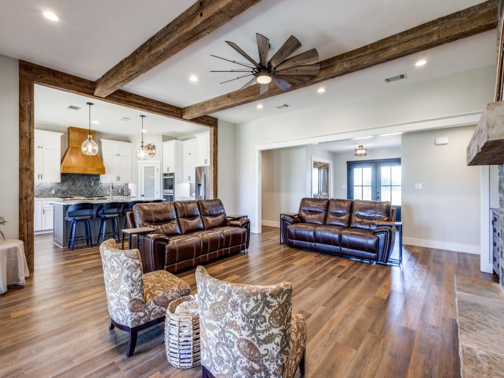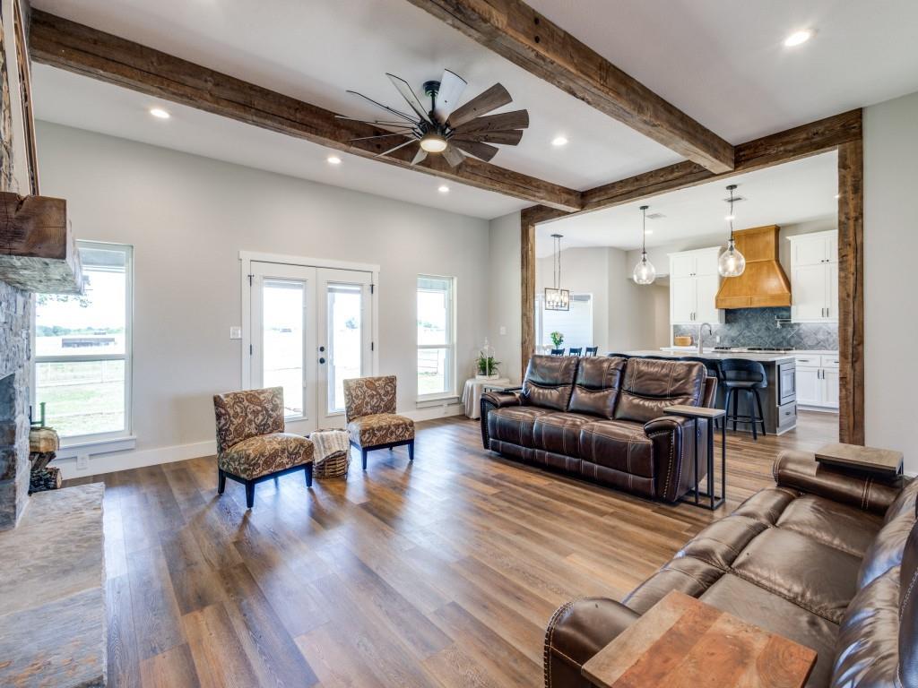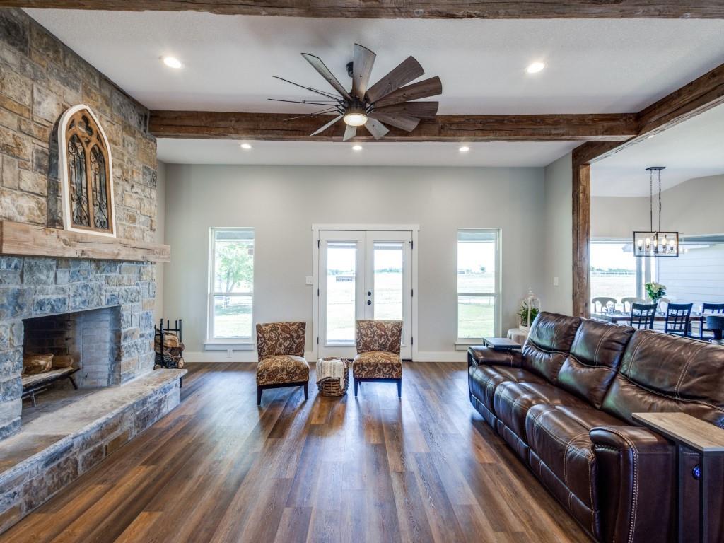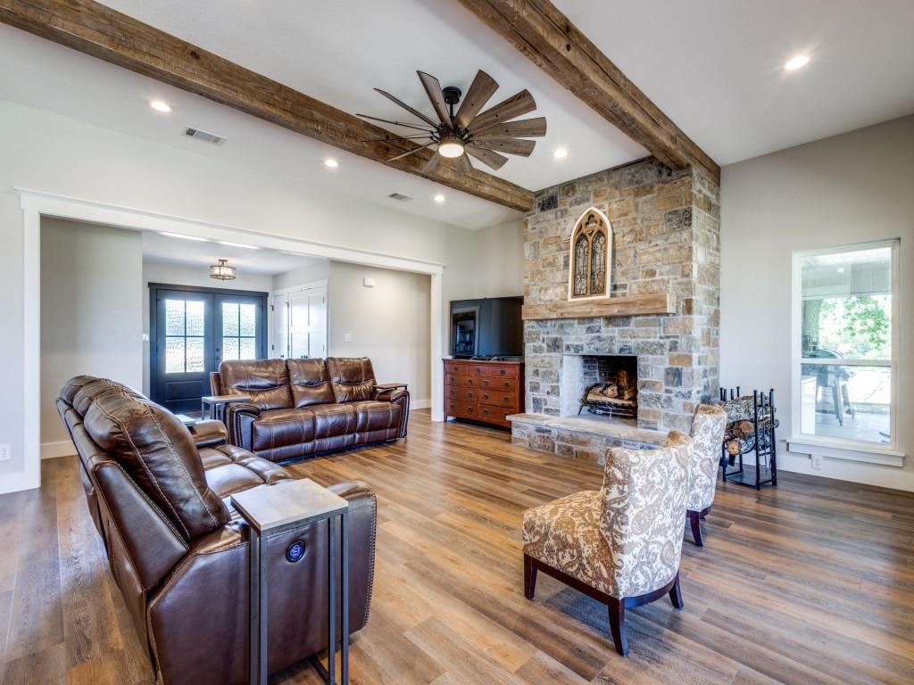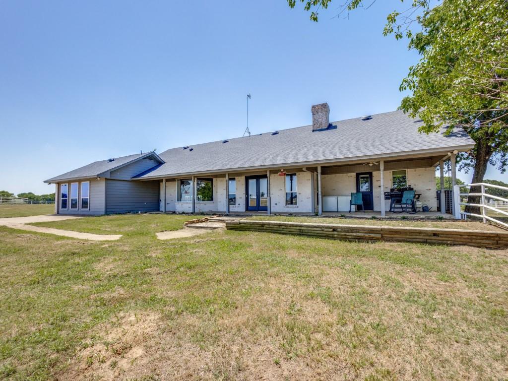 Incredible 38.654-acre property w completely renovated home. 4 large bedrooms, 3 full bathrooms, large living area plus flex room that could be 2nd living area or office. Lots of storage & great closets. All new windows, floors, and doors. Kitchen updates--cabinets, counters, appliances, light fixtures. All 3 bathrooms have all new cabinets, floors sinks, counters, lighting, and tile. Barnwood beams, recess lighting, 2 fireplaces, split bedroom floorplan, f4th bedroom can be 2nd primary with ensuite bath. Light and bright with lovely views from every window. Gorgeous woods at the west side along Pecan Creek. 2 large horse barns with concrete floors, stalls, stall doors, multiple overhead doors, tack rooms, grooming areas, water, and electricity. 2 bedroom 2 bath mobile home for guests or ranch hands.