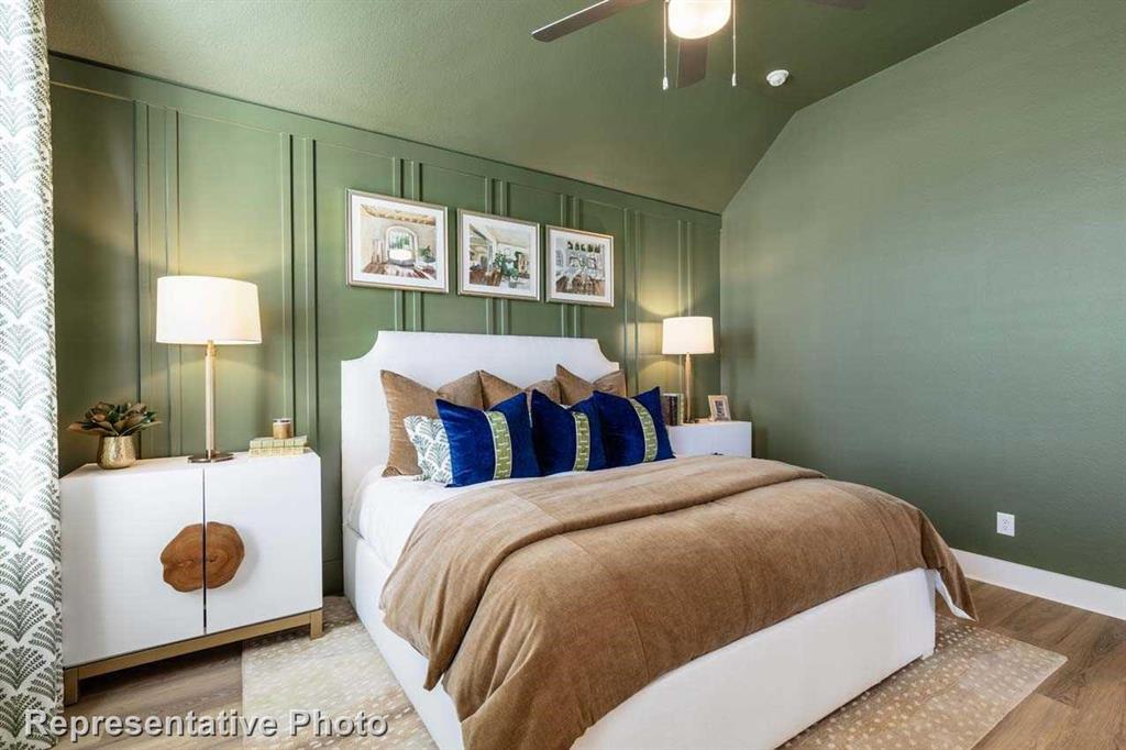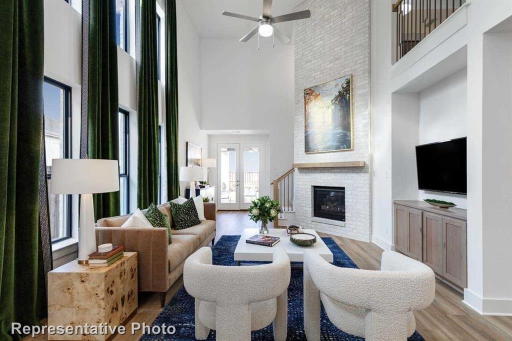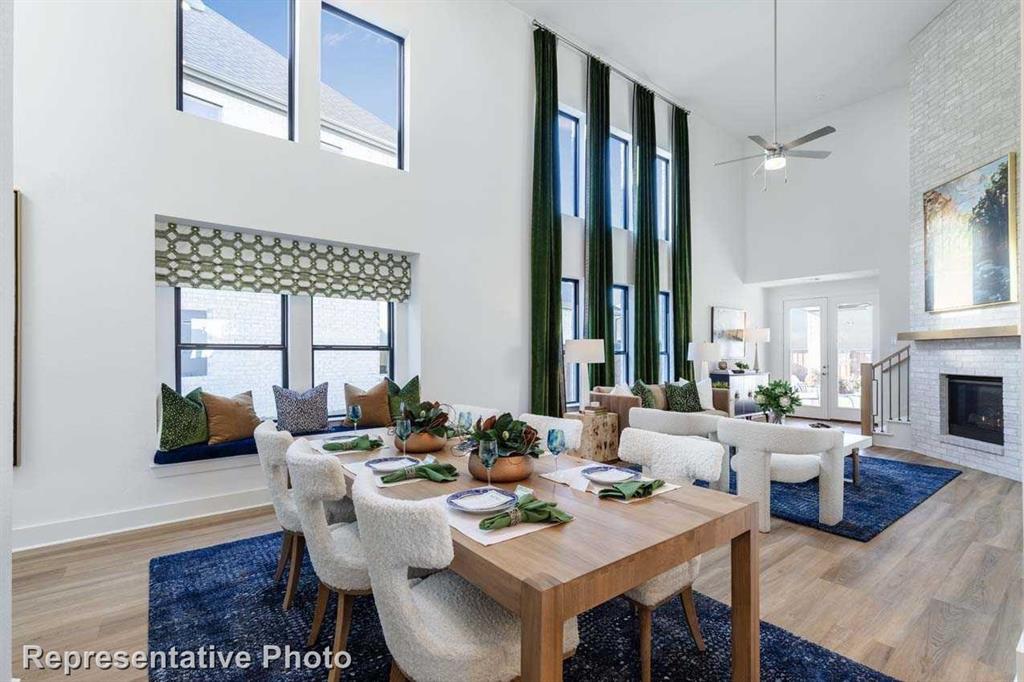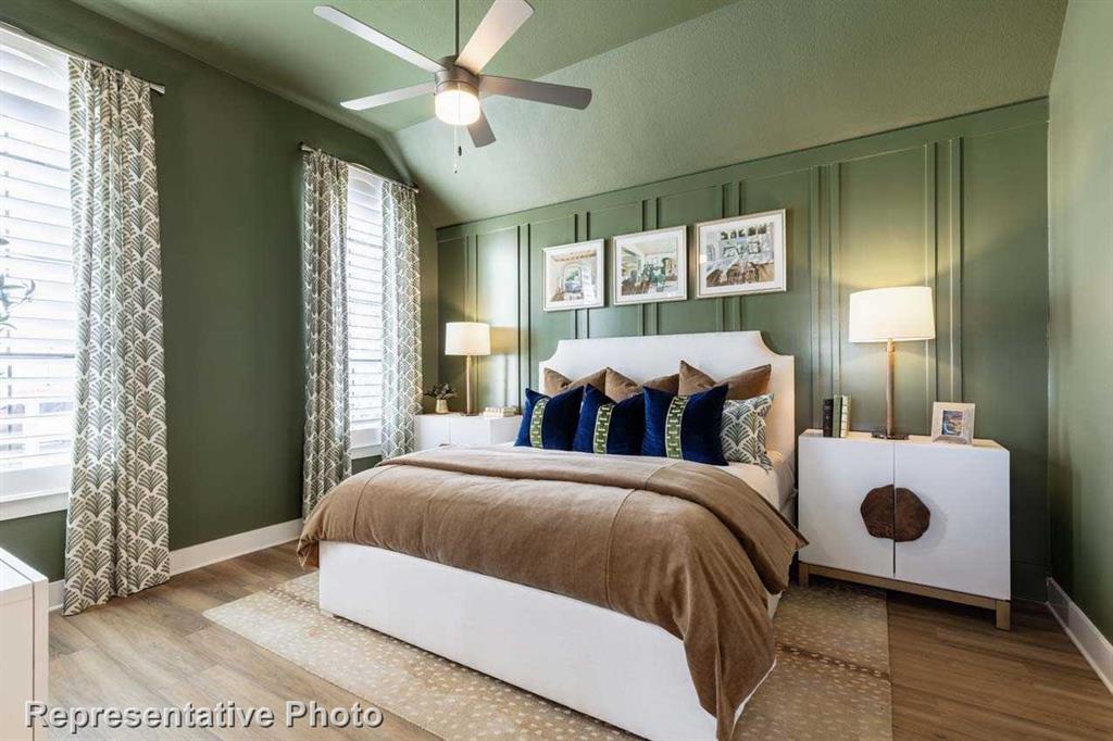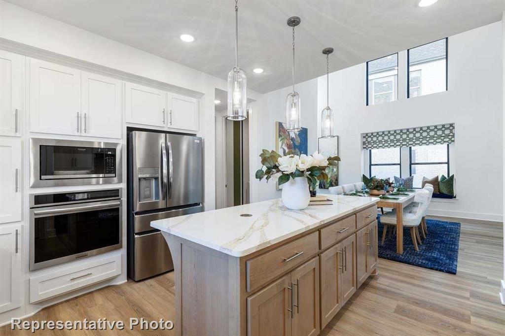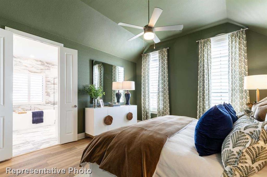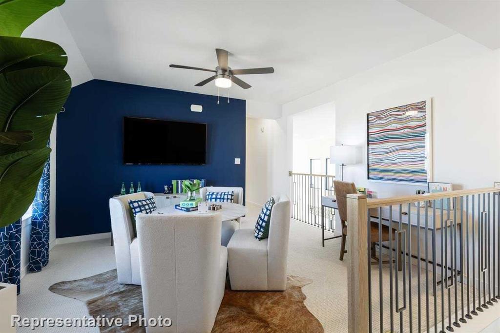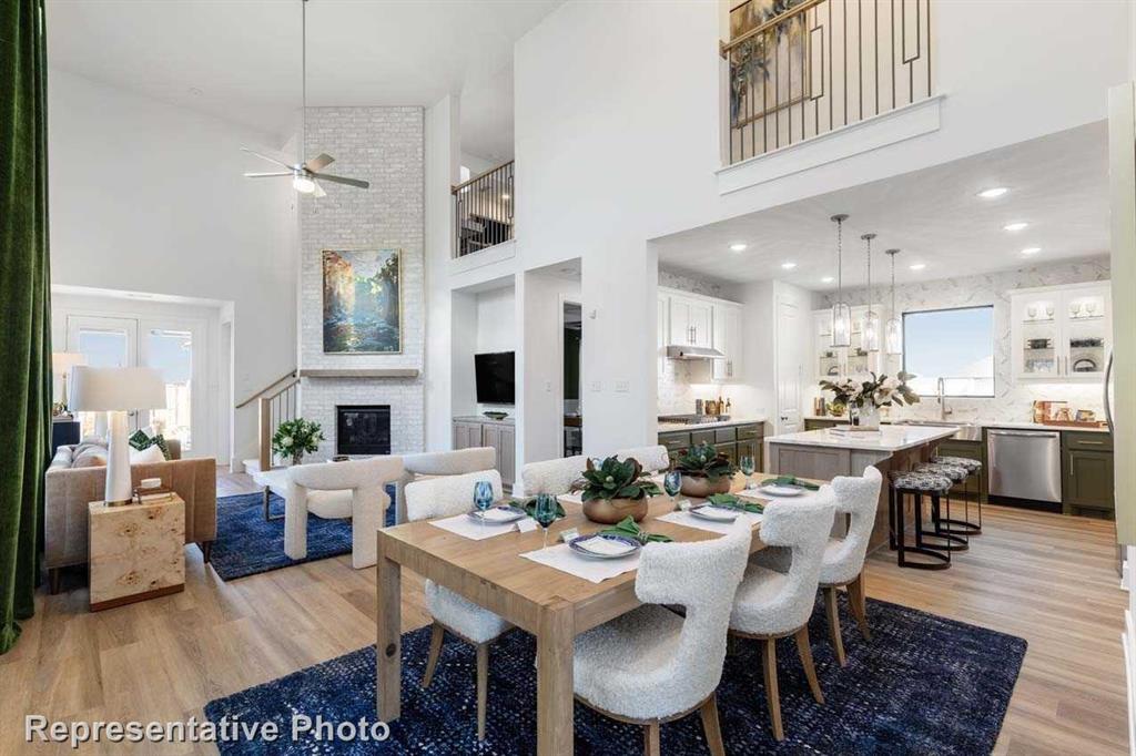 MLS# 20895309 - Built by Highland Homes - September completion! ~ This open and spacious floor plan is our model in Mosaic and is our number one seller. Walk in from the front door to a wall of windows to the ceiling letting in so much light, it makes this home so open and warm. Oversized island in the kitchen with lots of cabinets and a window over the kitchen sink. Primary bedroom is on the main floor with an additional bedroom & bath on the main for visitors. Upstairs is an Entertainment room, a loft that overlooks the family room and 2 additional bedrooms and full bath. Covered patio and fenced backyard.