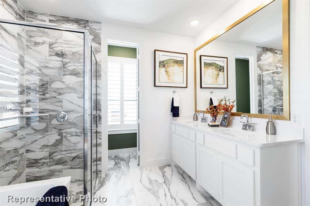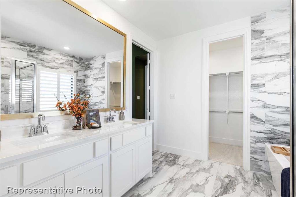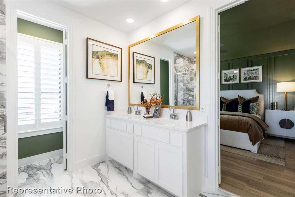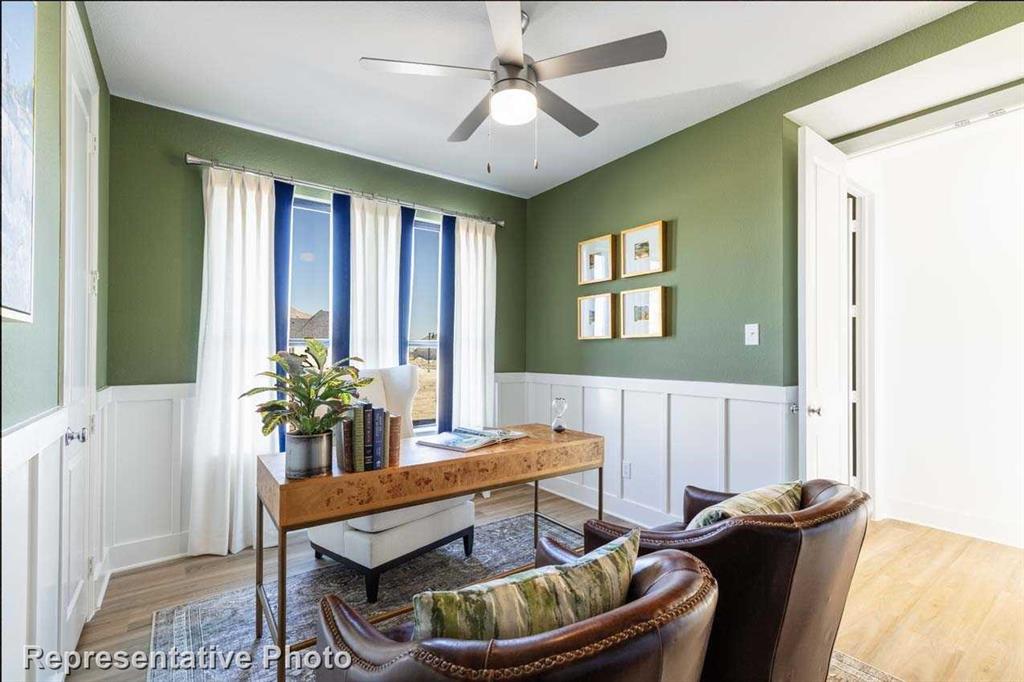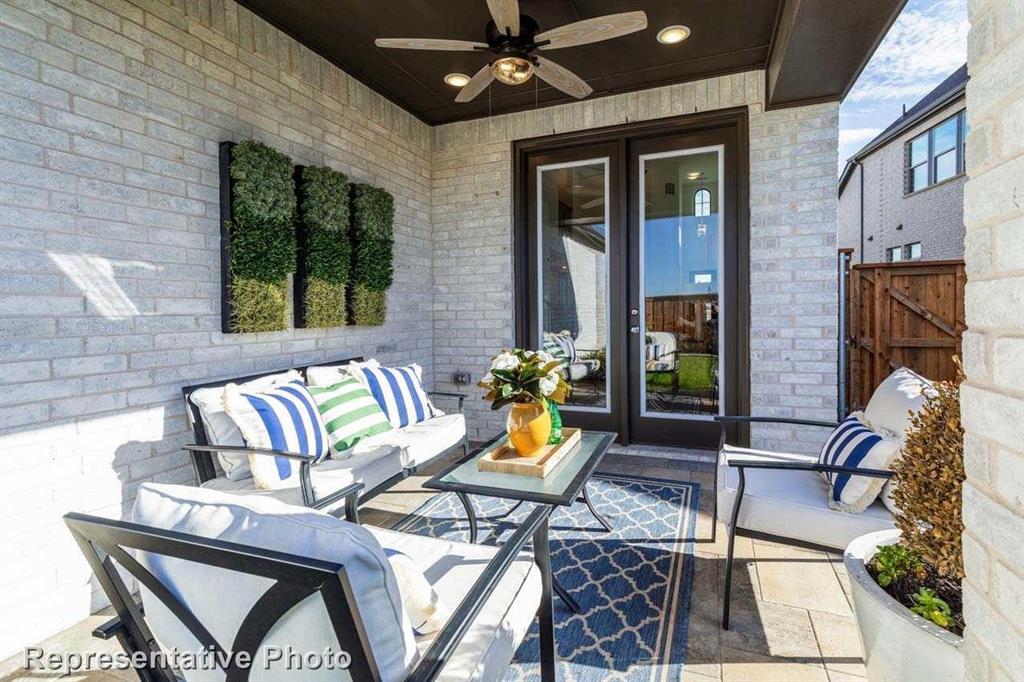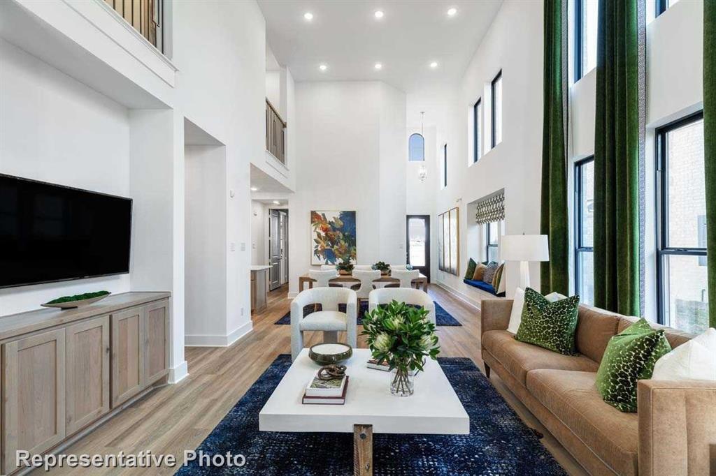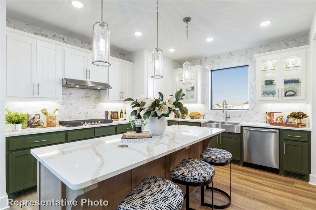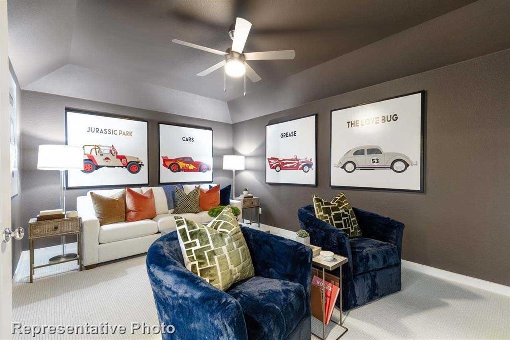 MLS# 20895309 - Built by Highland Homes - September completion! ~ This open and spacious floor plan is our model in Mosaic and is our number one seller. Walk in from the front door to a wall of windows to the ceiling letting in so much light, it makes this home so open and warm. Oversized island in the kitchen with lots of cabinets and a window over the kitchen sink. Primary bedroom is on the main floor with an additional bedroom & bath on the main for visitors. Upstairs is an Entertainment room, a loft that overlooks the family room and 2 additional bedrooms and full bath. Covered patio and fenced backyard.