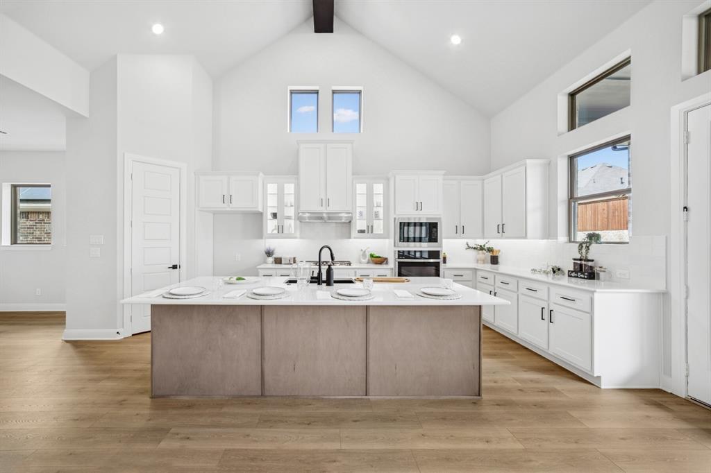 Welcome to The Steel, Cornerstone Haven, a beautifully designed home that offers an ideal blend of style and functionality. Situated on a desirable corner homesite, this residence boasts stunning 18 ft. cathedral style ceilings in both the Family Room and Owner’s Retreat, creating a sense of grandeur and spaciousness. Upon entry, your eyes will be drawn to the expansive Grand Area, which exudes a bright and airy atmosphere enhanced by its soaring ceilings. This inviting space seamlessly connects to the Dining Area, featuring an elevated ceiling design that adds a touch of elegance. Positioned conveniently to the right of the kitchen, the Dining Area provides an ideal setting for family gatherings while remaining visible yet distinct from the Family Room. This home also offers a spacious Enclosed Study Room, perfect for a quiet home office, as well as an enclosed TV Media room that enhances your entertainment options.