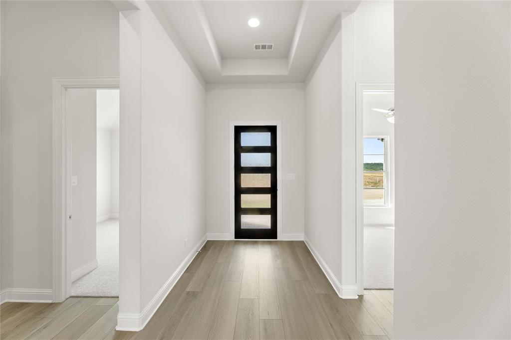 MLS# 20895496 - Built by J Houston Homes - Ready Now! ~ NEW JOHN HOUSTON HOME AT THE PARKS AT PANCHASARP FARMS IN JOSHUA ISD. This stunning new design boasts 12' ceilings and abundant natural lighting from expansive windows. The home offers 4 beds, 3 baths, oversized garage for extra storage, huge family room with open design, vaulted ceiling in the dining, oversized primary shower with seat, big primary closet with seasonal rods and a back covered patio that overlooks the park with amazing views. The gourmet kitchen features sleek quartz countertops, elegant custom cabinetry, wood wrapped island, trash rollout drawer, and built-in appliances with gas cooktop, overlooking the family...makes this plan perfect for entertaining. MOVE-IN READY!