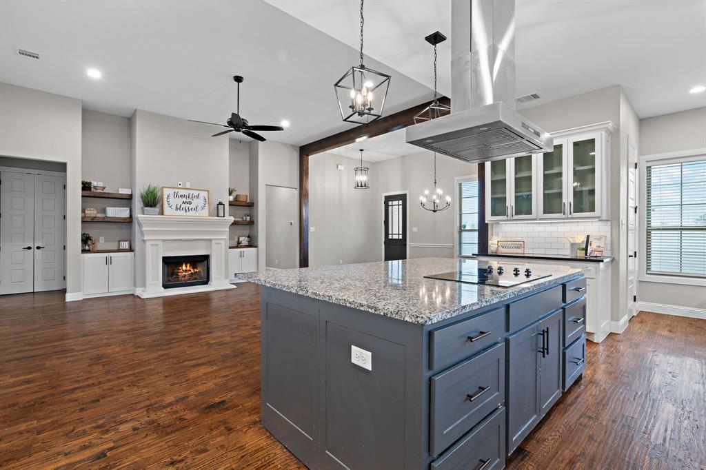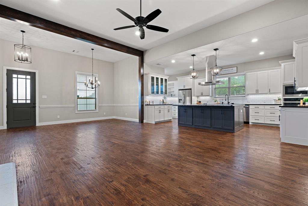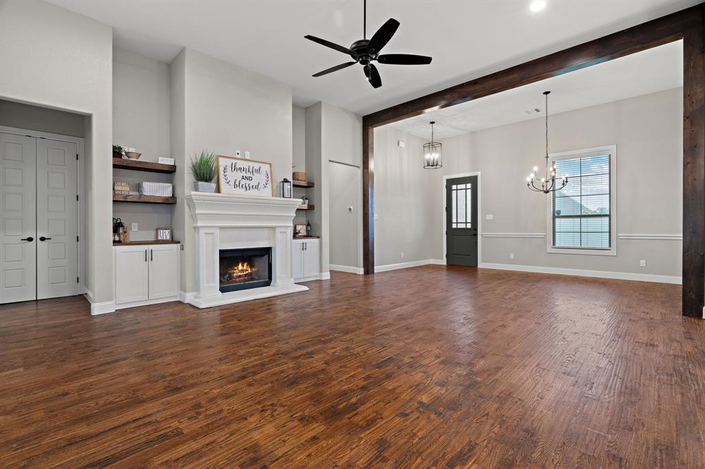 Highly sought after neighborhood of North Ridge Estates has your new home waiting for you! PEASTER ISD! FIBER INTERNET! Home sits on 2.02 acres and is less than 6 miles from the heart of Weatherford. There, you will find endless shopping, entertainment, dining and more. Inside this Ranch style home, you will find an abundance of natural light, tall ceilings, plenty of storage, ample amount of space for entertaining and much more! Low maintenance HOA with only one way in and one way out! This bright and lovely home has a split layout with 4 great size bedrooms all with walk in closets. In the main living area, one of the most beautiful focal points is the massive island with stunning granite countertops! But it doesn't stop there! Custom wood beams accenting your spacious dining room, decorative lighting throughout the home, built ins, custom cabinetry and hand scrapped wood floors are just a few of the lovely features of this home! Some upgrades include whole home filtration system, water softener, reverse osmosis system, new roof in 2023, new well pump in 2023, bidet on all toilets, pipe fencing, and a screened in patio. Book your private showing today!