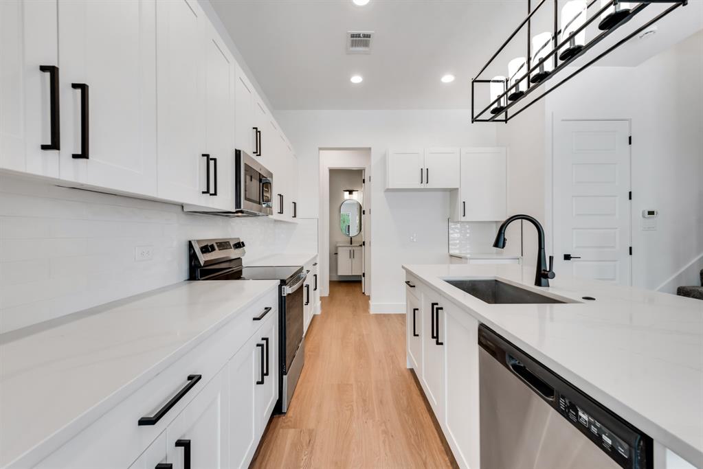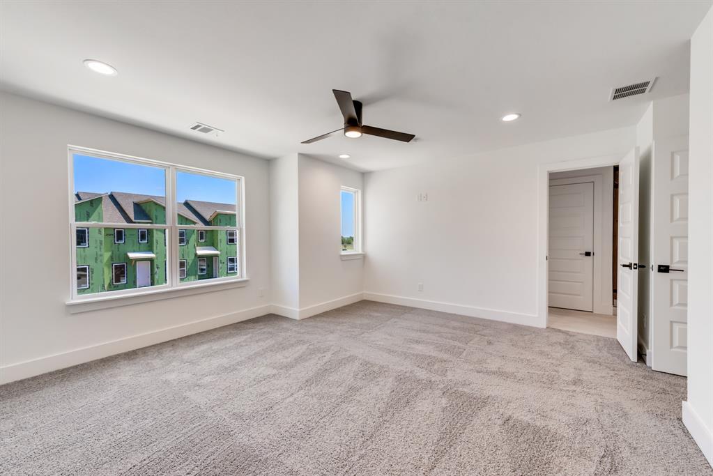Discover your dream home with this newly constructed property in the heart of Rowlett, TX. This exquisite residence offers 3 spacious bedrooms, 2.5 luxurious baths, and a generous 2-car garage. Immerse yourself in an inviting open-concept living area featuring soaring 11ft ceilings that enhance the space's airy feel. The kitchen is a chef’s delight, adorned with custom cabinetry equipped with soft close features and topped with stylish quartz countertops. Modern light fixtures brighten every corner, complementing the contemporary color palette. All bedrooms are thoughtfully situated on the upper level, ensuring tranquility and privacy. A spacious garage not only shelters vehicles but also provides ample space for storage. Additionally, for the eco-conscious, an EV charger in the garage makes powering up your electric vehicle a breeze. This residence is nestled in a vibrant community that includes a dog park right within reach, perfect for pet lovers. Surrounded by newly developed retail spaces, it guarantees unmatched convenience for everyday needs. Experience the ease of access to nearby Sachse and PGBT Tollway, simplifying commutes and weekend getaways.