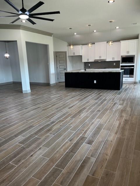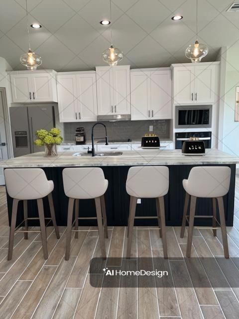 Gorgeous Taylor Made Custom Home with stone accents sits on a generous sized lot and completed in August 2025. Open the upgraded designer front door to your newly constructed home with architectural splendor showcasing the Builder's attention to detail. The 10 foot soaring ceilings and open concept make this home open and spacious with stunning designer wood porcelain tile throughout the main area. This light and bright kitchen will delight the your inner chef by cooking in your stainless steel appliances and walk in pantry. There's plenty of room to entertain on the oversized quartz island with striking pendant lights or grab your bar stool for additional casual seating. The kitchen features upgrades such as separate oven and microwave and pots and pan drawers. The breakfast room is surrounded by large bay windows overlooking the backyard with plenty of room to entertain on the covered patio. The stone wood burning fireplace with hearth is a lovely place to cozy up to and the picture perfect spot to relax. Steps away from the living room in the primary bedroom with large windows floods the room with natural light. The ensuite is the perfect place to unwind from a long day by soaking in the oversized tub or stepping into the beautiful tiled shower with bench, dual sinks, walk in closet. Additional custom features: recessed lights, designer wood porcelain tile throughout, 3 pendant lights, extra parking in driveway, stone accents, stone fireplace, irrigation system, landscaping, 5.25 baseboards, oil rubbed bronze finish on interior lighting and fixtures, quartz countertops and all homes built to Energy Star Rating.Don't miss the opportunity to own this beautiful home.