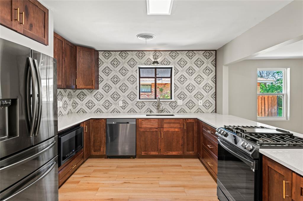 Welcome to 307 Dickey Drive, a beautifully designed 5-bedroom, 3-bath home in the desirable Oak Crest Estates. This home offers the perfect combination of comfort, style, and functionality. Step inside to abundant natural light and an open-concept layout featuring a cozy living area with a wood burning stove, a well-appointed kitchen, and two dining spaces—ideal for entertaining. The updated kitchen includes a stainless steel dishwasher and a gas range, perfect for home chefs. Upstairs, a versatile loft area with two bedrooms, one bathroom, and a kitchenette, provides the perfect space for multi-generational living, a home office, workout room, creative studio, or an opportunity for a rental. The home also features modern updates, including stylish vanities, updated flooring, and a luxurious soaking tub in the bathroom. Nestled in a quiet neighborhood, this home is within walking distance of parks, an elementary school, and the American Airlines Headquarters. With easy access to Highway 183 and 360, you're just minutes from top shopping, dining, and DFW Airport—right in the heart of the Metroplex! Motivated seller! Don’t miss out on this exceptional home—schedule your showing today!
