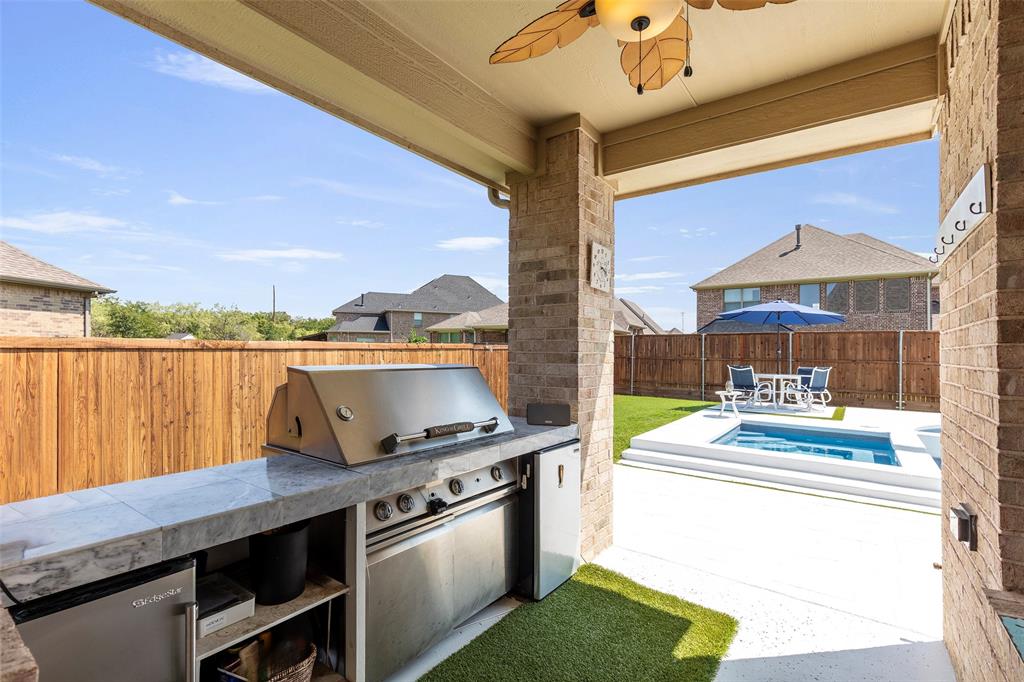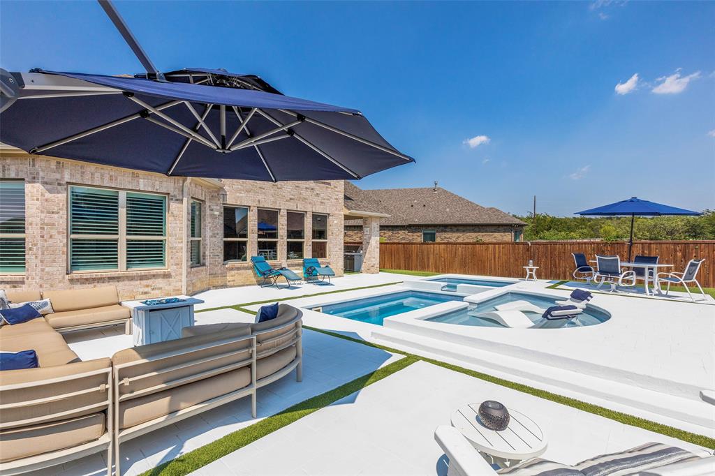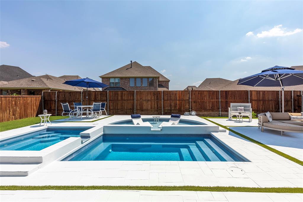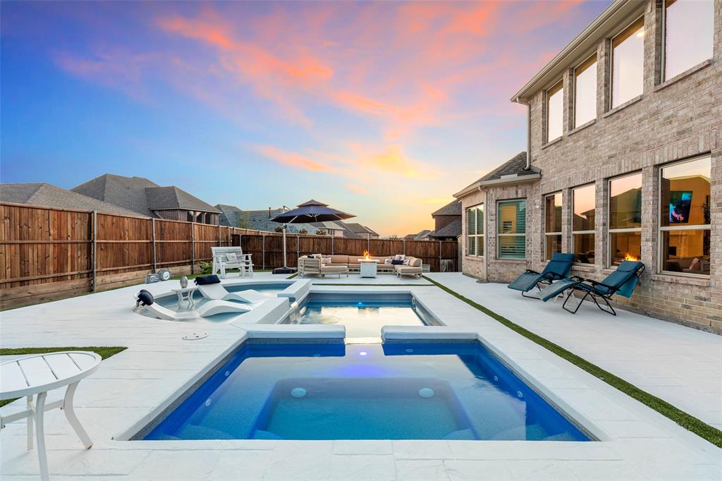 Tucked within Austin Waters, one of The Colony’s most coveted communities known for its charm, tree-lined streets, and top-rated schools, this 4-bedroom, 4-bath residence offers the perfect blend of elegance and everyday comfort. Step inside and immediately feel the warmth of soaring ceilings, streams of natural light, and refined flooring that set the tone for the home’s inviting character. Just off the entry, a dedicated office offers a quiet retreat for remote work, creative projects, or simply a moment of calm. The heart of the home is the expansive living room, anchored by a cozy fireplace and filled with light from walls of windows. It flows seamlessly into the show-stopping kitchen, where a massive granite island, stainless steel appliances, and abundant cabinetry make everything from weeknight meals to holiday gatherings effortless. Your primary suite is a true sanctuary—complete with a serene sitting area, custom plantation shutters, and a spa-inspired bath featuring dual vanities, a soaking tub, a walk-in shower, and a closet designed to accommodate two. Upstairs, life expands with three generously sized bedrooms (each with a walk-in closet), two full bathrooms, a spacious game room, and a media room designed for movie nights, game days, and sleepovers alike. And then there’s the backyard—the kind of retreat most people dream about. Spend sun-soaked afternoons lounging by the sparkling pool with a tanning ledge, or unwind in the spa under the stars. Fire up the outdoor kitchen with a grill and beverage fridge, and enjoy shaded comfort on the covered patio as friends and family gather around. Beyond your front door, Austin Waters offers a lifestyle as vibrant as the home itself—nearby parks and trails, community charm, and easy access to shopping, dining, and major highways. This isn’t just a house—it’s a place where memories are made, milestones are celebrated, and everyday life feels extraordinary.