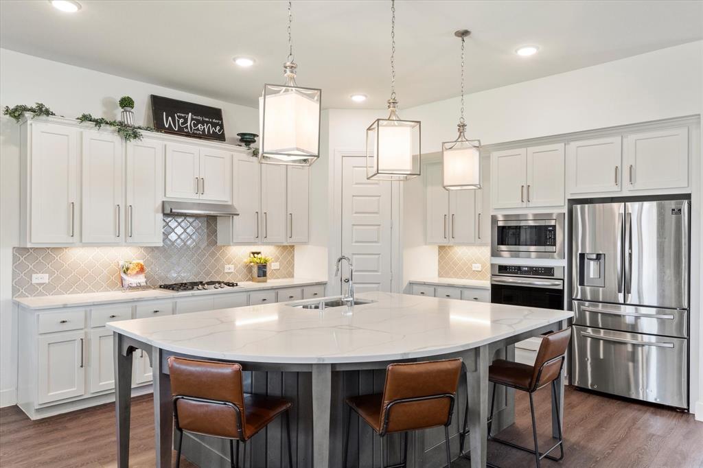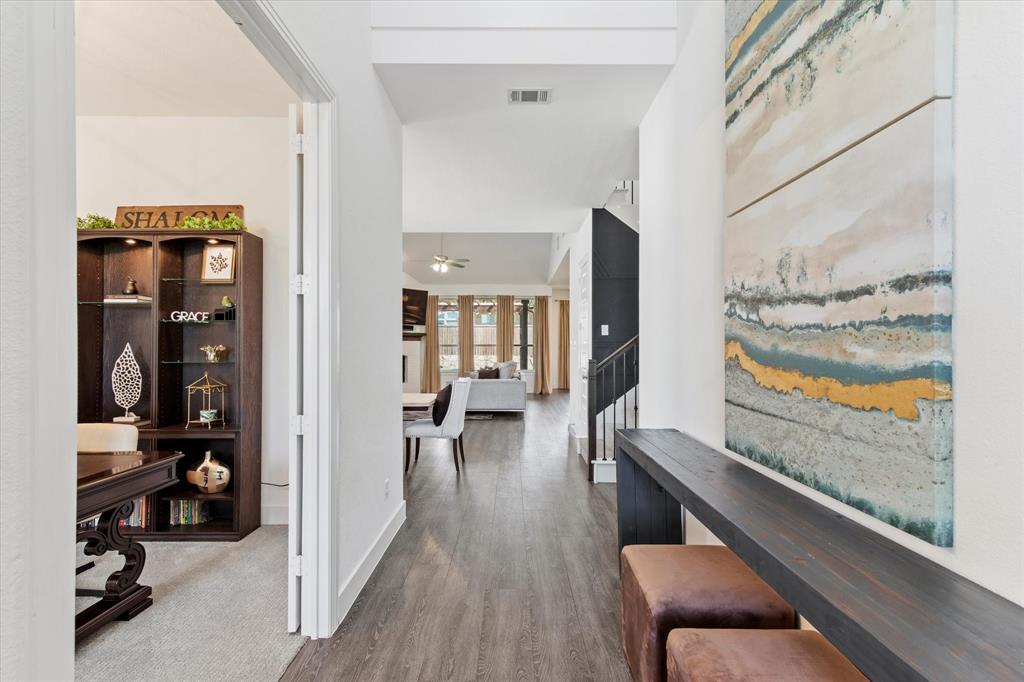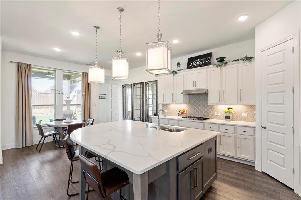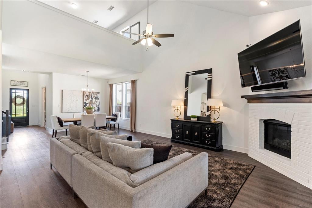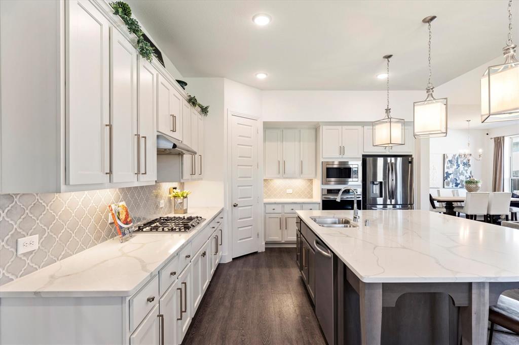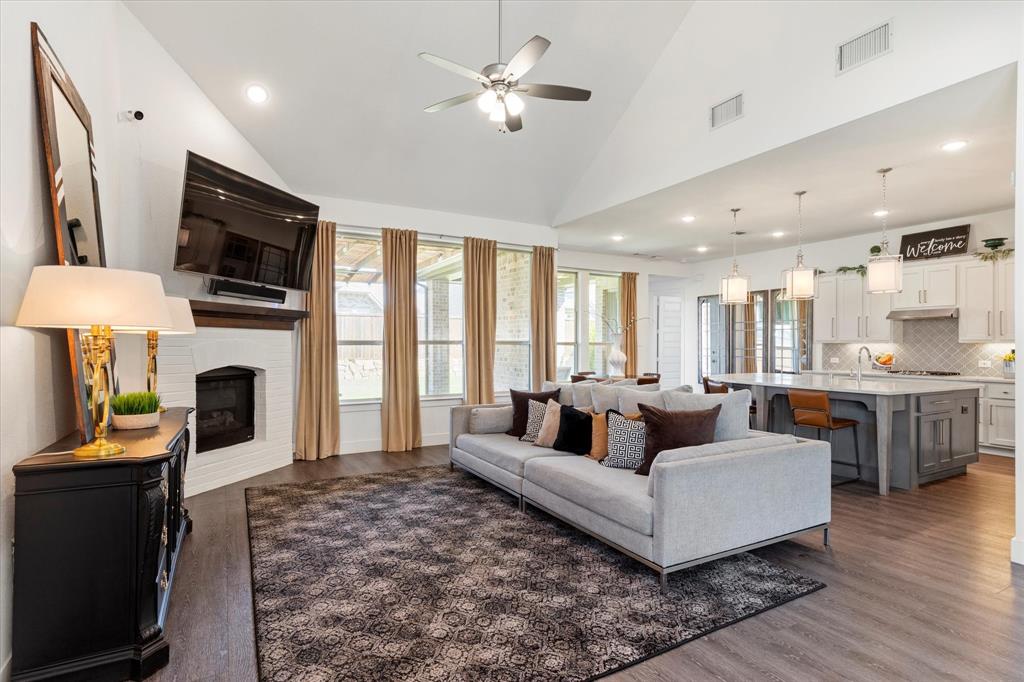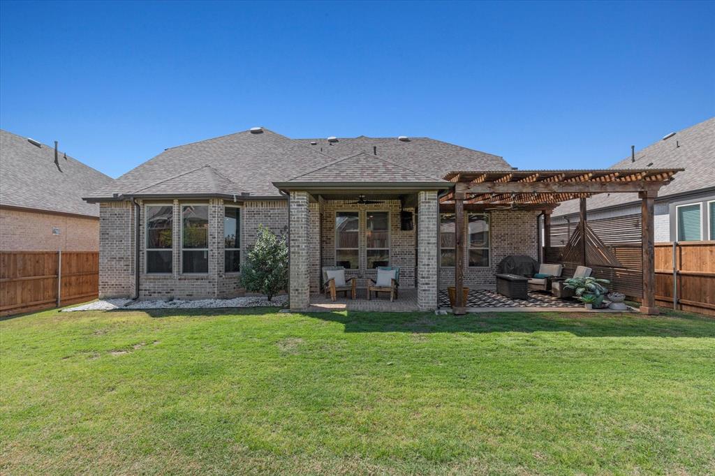 Discover this absolutely breathtaking Highland home situated in the desirable, master-planned community of Sandbrock Ranch. A grand foyer invites you inside this expansive entertainers dream home with french doors leading into a study off the entry. The show-stopping living room offers awe-inspiring 21 ft. ceilings, gas fireplace and seamless sight-lines of the kitchen and dining areas making entertaining a breeze. The gourmet chef's kitchen is fully equipped with beautiful Quartz counter-tops, Frigidaire Gallery stainless appliances, gas cook-top and expansive island for gathering. Escape to the well-appointed primary suite situated on the first floor with a luxurious ensuite bath and walk-in closet which leads into the utility room. A secondary bedroom and full bath is also located on the main level and is perfect for visiting guests or multi-gen families. An elegant wrought-iron staircase leads you upstairs to a game and bonus room along with three bedrooms and two full baths. Entertain friends and family in your private backyard with an extended covered patio and pergola. Sandbrock Ranch is an incredible master-planned community with amenities galore including monthly events, resort style swimming pool, fitness center, dog park, fishing ponds, trails and on-site Elementary school.