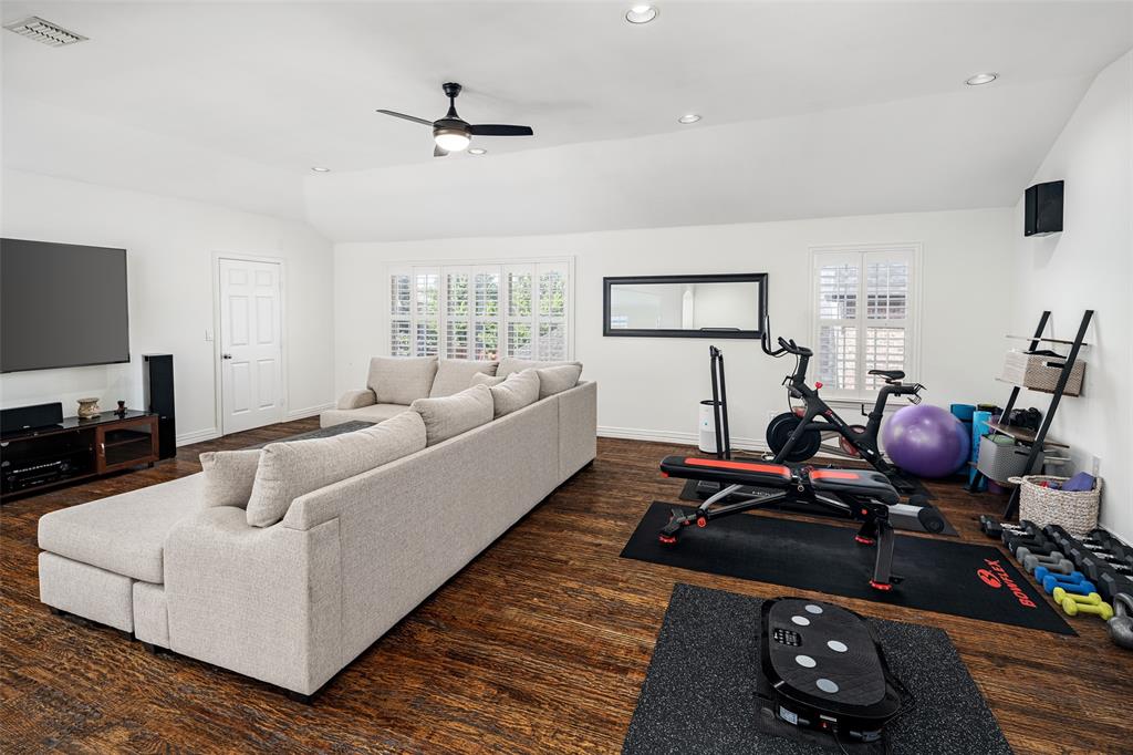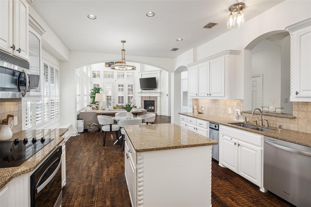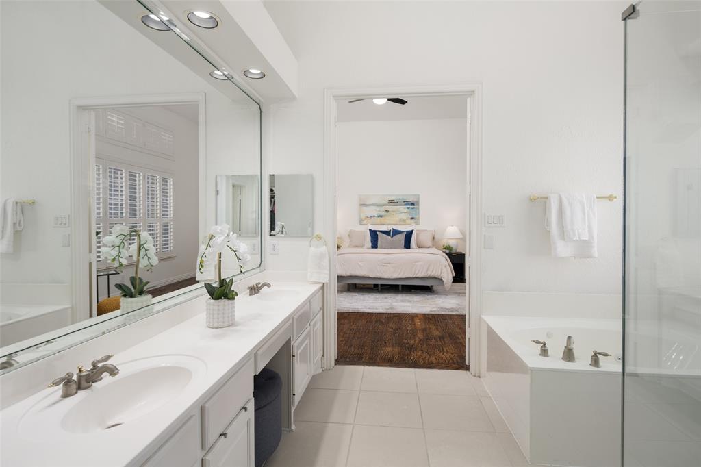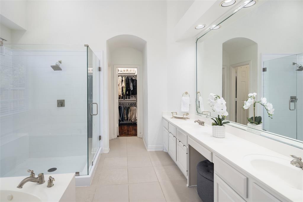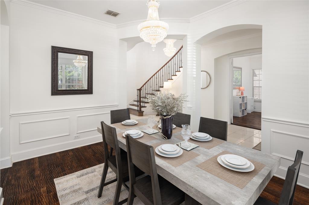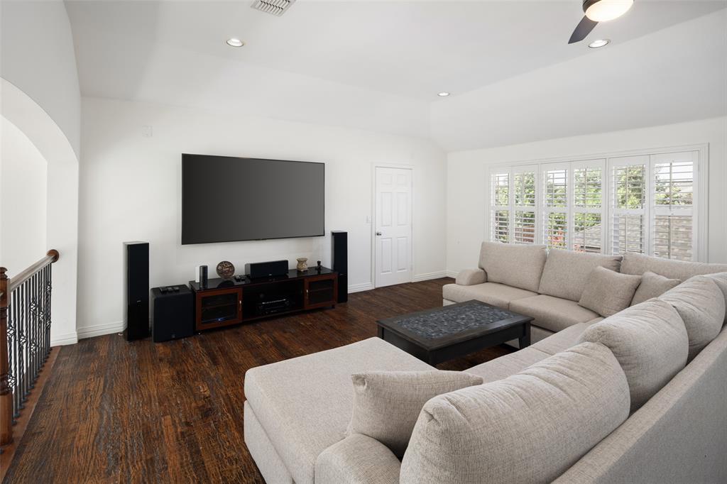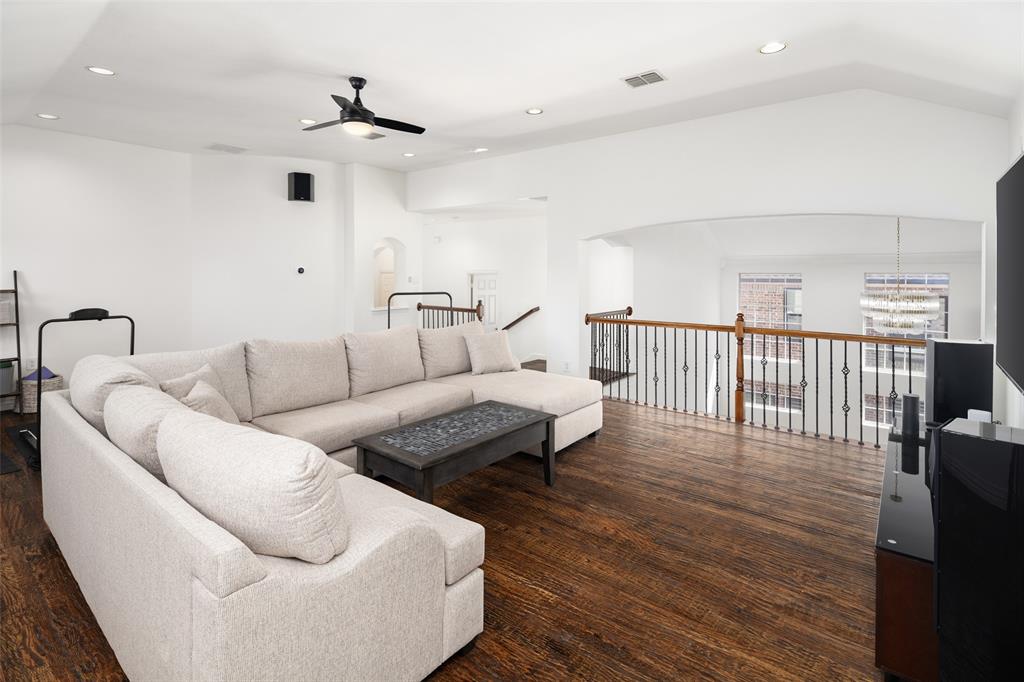 Welcome to this stunning masterpiece nestled in the heart of Frisco. This luxury home offers a serene retreat in a friendly 5 star neighborhood with award winning schools. This meticulously maintained home is beautifully designed featuring handscraped hardwood floors, plantation shutters and a sweeping staircase creating a warm and inviting atmosphere throughout. The high ceilings and abundance of windows are sure to impress. The gourmet kitchen is thoughtfully designed and plumbed for gas, complemented by under-cabinet lighting, island, new cooktop (2024), new oven (2024), and new dishwasher (2024). Each spacious bedroom offers direct access to a bathroom, ensuring comfort and privacy for family and guests alike. The primary suite boasts a luxurious jetted tub, separate shower, and large closet for your personalized comfort. Upstairs, you'll find a generous gameroom with additional storage, perfect for keeping things organized. Enjoy outdoor living year-round with a turfed backyard (2024) offering beauty and low maintenance in equal measure. This home is a perfect blend of style, comfort, and modern upgrades. One of the Community pools is on the next street over. Other amenities include miles of greenbelt and creeks, fishing pond, and tennis courts. Located near dining, shopping, parks, Frisco golf club, and more. Schedule a showing today!