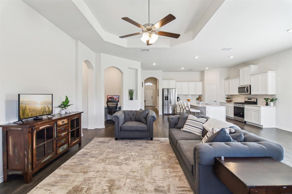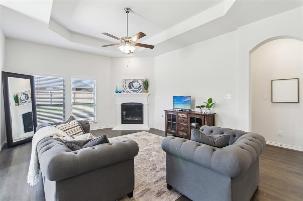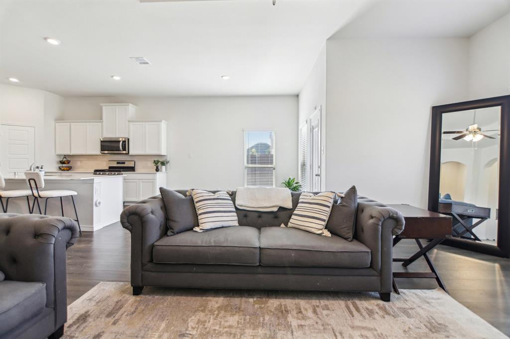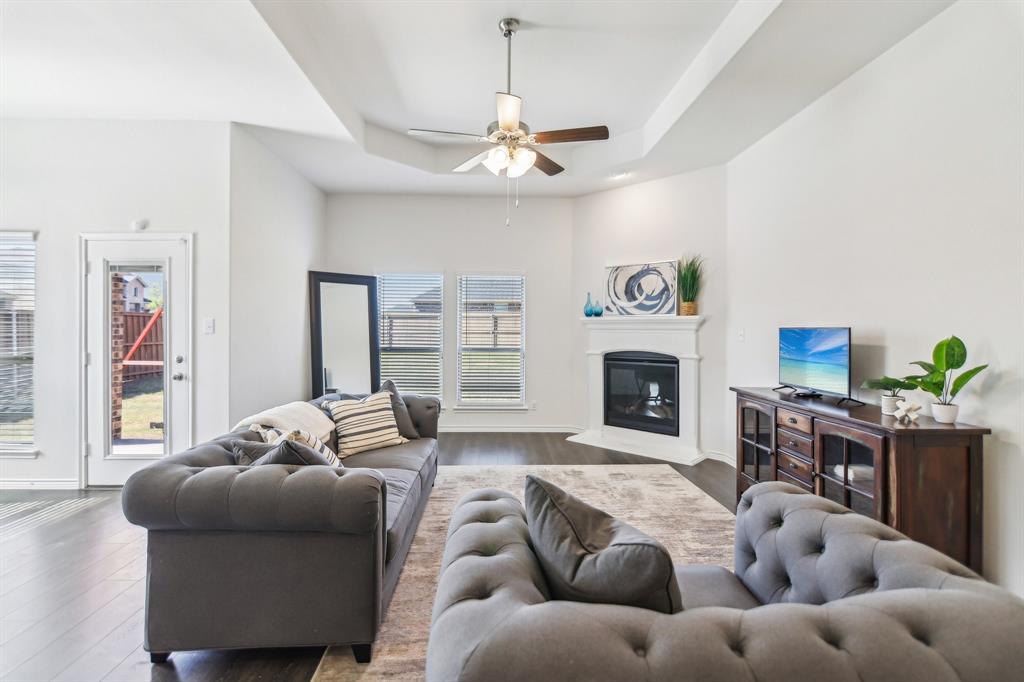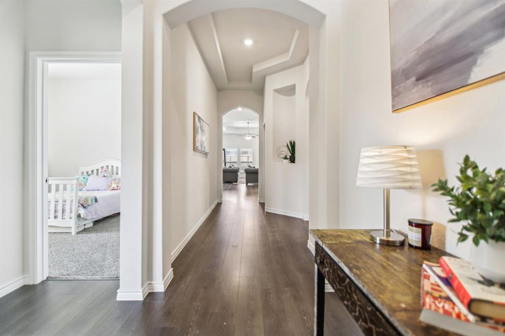 Rare like-new single-story home on a large corner lot with smart-home upgrades, new roof, resort-style community amenities, and seamless indoor-outdoor living. Welcome to this beautiful north-northeast facing home in the highly sought-after Valencia on the Lake community! Nestled on a huge corner lot with a massive backyard, this 4-bed, 2-bath home offers space, style, & convenience all in one, plus it's only minutes from the lake! Step inside to tall ceilings, luxury vinal planking floors, a gas fireplace, and open layout, perfect for everyday living and entertaining. The oversized kitchen is complete with a large island, quartz countertops, stainless steel appliances, a gas cooktop, and a walk-in pantry. The large primary bedroom includes a separate shower and soaking tub, dual sinks and a large walk-in closet. There are also 3 more bedrooms, as well as a separate workspace. Plus, the oversized laundry room adds to the home’s exceptional functionality. This is a true smart home, giving you modern control over lighting, security, and climate. Additional upgrades include fresh paint, new gutters, upgraded landscaping, a French drain, and a new roof. A security system is installed and staying with the home for added peace of mind. The home is in a quiet, tucked-away community, and you’ll love the unbeatable location— south of Highway 380, just minutes from the Dallas North Tollway, and near the PGA headquarters. Everyday errands are a breeze with the new HEB & Costco nearby. Families will appreciate that resident children have the option to attend either Little Elm or Denton ISD, and both school districts offer bus drop-off right in front of the house. As a resident of Valencia on the Lake, you’ll enjoy resort-style amenities including 2 swimming pools, a fitness center, a clubhouse, tennis & sand volleyball courts, 2 playgrounds, direct lake access, and nature trails! $4,000 closing cost credit available to buy down your interest rate down!