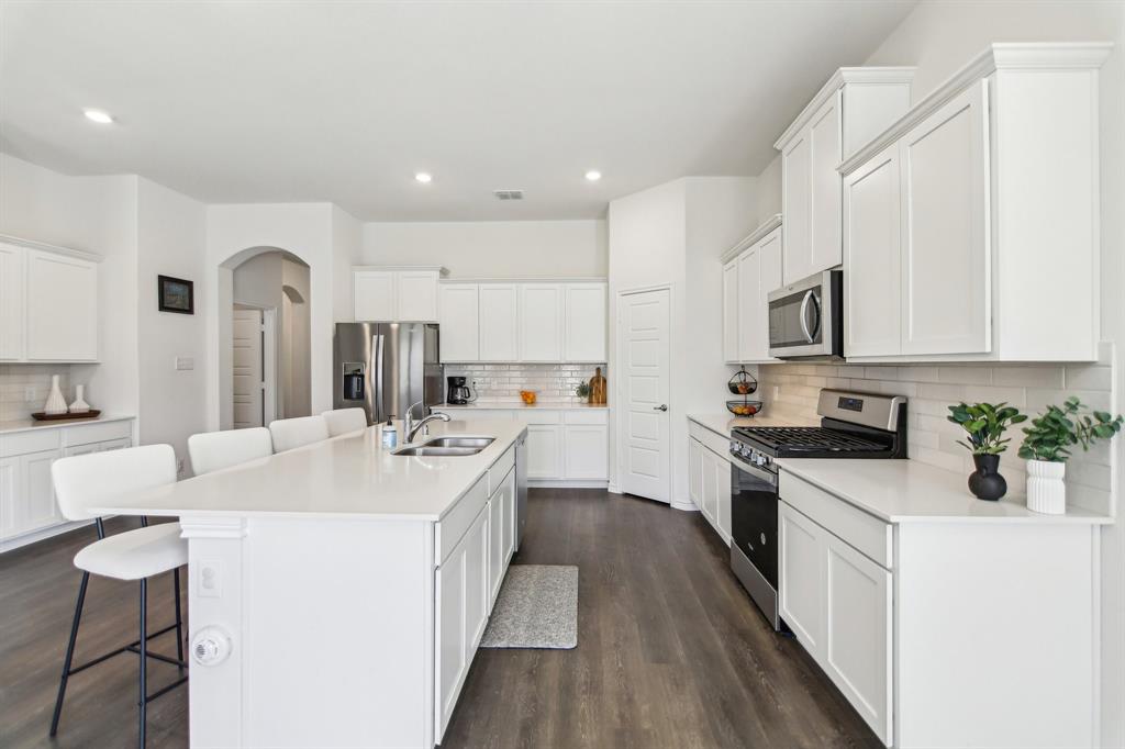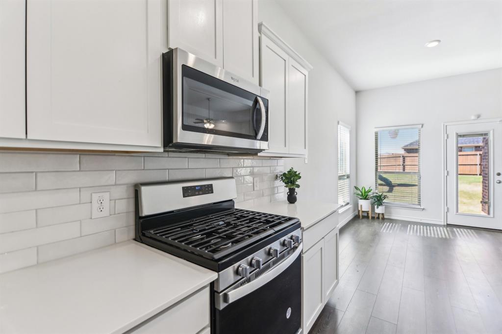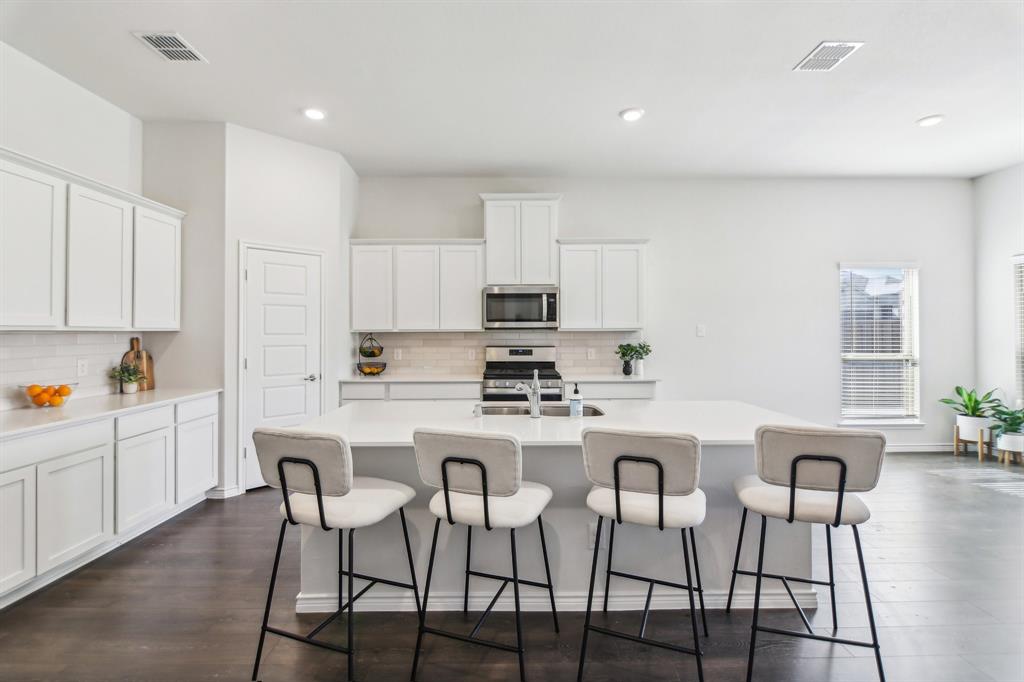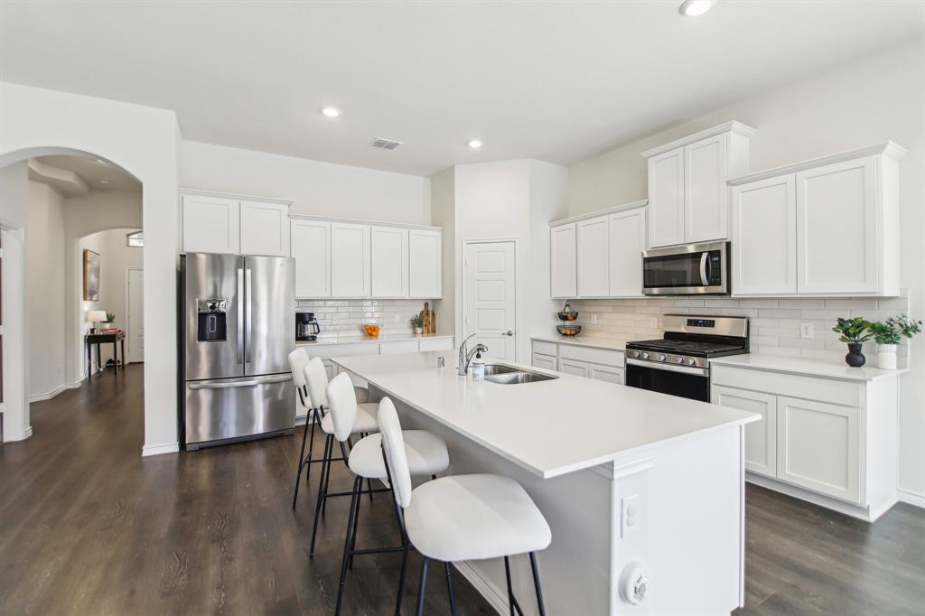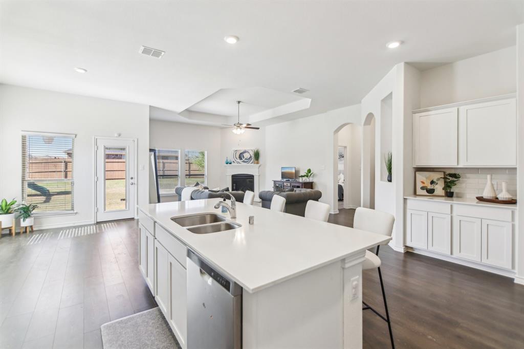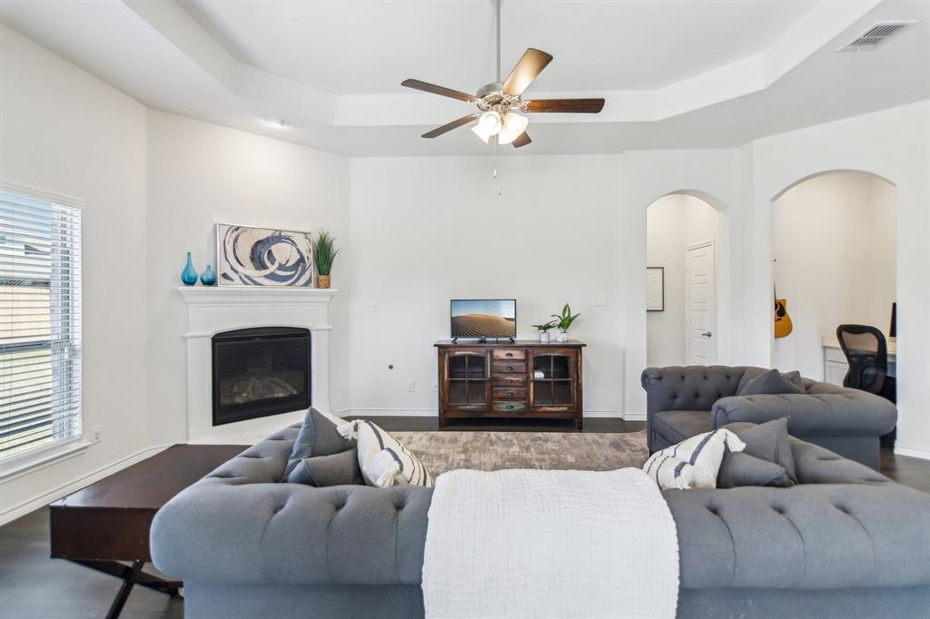 Rare like-new single-story home on a large corner lot with smart-home upgrades, new roof, resort-style community amenities, and seamless indoor-outdoor living. Welcome to this beautiful north-northeast facing home in the highly sought-after Valencia on the Lake community! Nestled on a huge corner lot with a massive backyard, this 4-bed, 2-bath home offers space, style, & convenience all in one, plus it's only minutes from the lake! Step inside to tall ceilings, luxury vinal planking floors, a gas fireplace, and open layout, perfect for everyday living and entertaining. The oversized kitchen is complete with a large island, quartz countertops, stainless steel appliances, a gas cooktop, and a walk-in pantry. The large primary bedroom includes a separate shower and soaking tub, dual sinks and a large walk-in closet. There are also 3 more bedrooms, as well as a separate workspace. Plus, the oversized laundry room adds to the home’s exceptional functionality. This is a true smart home, giving you modern control over lighting, security, and climate. Additional upgrades include fresh paint, new gutters, upgraded landscaping, a French drain, and a new roof. A security system is installed and staying with the home for added peace of mind. The home is in a quiet, tucked-away community, and you’ll love the unbeatable location— south of Highway 380, just minutes from the Dallas North Tollway, and near the PGA headquarters. Everyday errands are a breeze with the new HEB & Costco nearby. Families will appreciate that resident children have the option to attend either Little Elm or Denton ISD, and both school districts offer bus drop-off right in front of the house. As a resident of Valencia on the Lake, you’ll enjoy resort-style amenities including 2 swimming pools, a fitness center, a clubhouse, tennis & sand volleyball courts, 2 playgrounds, direct lake access, and nature trails! $4,000 closing cost credit available to buy down your interest rate down!