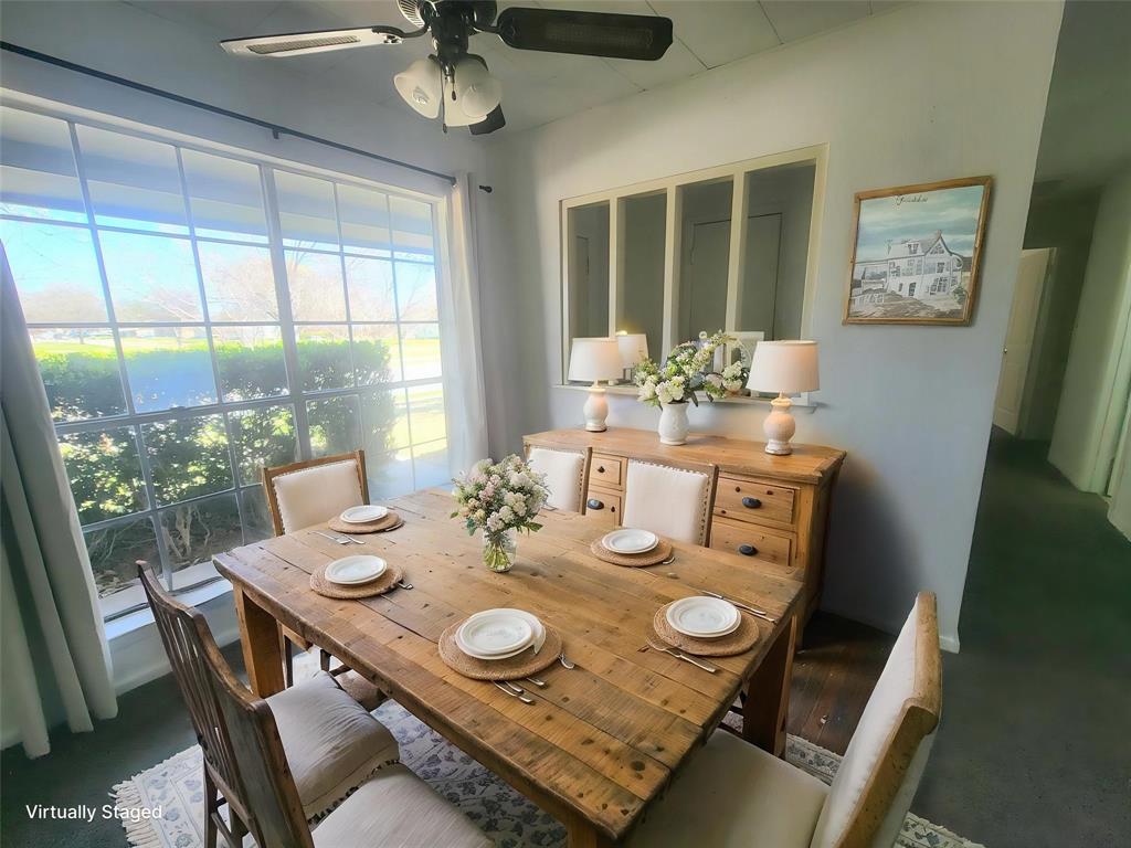 This charming home offers stunning park views from every front window, creating a serene and picturesque setting. Nestled on an extra-wide, newly repaved street with brand-new sidewalks, it sits on a spacious lot in a friendly neighborhood, directly across from a well-maintained city park with a walking trail, playground, and picnic areas. Step inside to discover an updated kitchen and a bright, open-concept layout perfect for everyday living and entertaining. The fenced backyard is ideal for outdoor enjoyment, shaded by a mature pecan tree, and includes a handy storage shed for lawn tools or extra gear. The interior features generously sized bedrooms with large closets, central heat and air replaced in the last 4 years, fresh paint inside and out, and new carpet. The roof is in excellent condition, and the home enjoys great natural airflow, especially in spring and fall. Sunlight fills the home throughout the day, reducing the need for artificial lighting. Hosting is a breeze with a 6-car driveway, offering ample parking for friends and family. Whether you're a first-time buyer, growing household, or someone looking to downsize into peace and comfort, this home is a true hidden gem. There's not a better location--centrally located near all the restaurant & shopping one could need! Easy access to Hwy 80, I20, I30, & I635 for a quick commute! Don’t miss your chance to make it your own—schedule your visit today! Refrigerator negotiable.