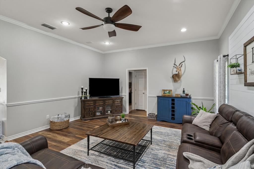 Check out this gorgeous family home in the heart of Van. This home boasts large living areas inside and out. The master suite has his and hers walk in closets and is nestled in the back of the home for privacy. There is a great pantry, utility closet, and nice sized laundry room. Nice sized office and huge windows through out for natural light tops off the interior. The back yard is perfect for watching the game with family and friends and sunbathing on the deck. The location is close to all restaurants and schools, yet is hidden in a family friendly and quiet neighborhood. There is even a storm shelter for peace of mind. This place is small town charm at its best!