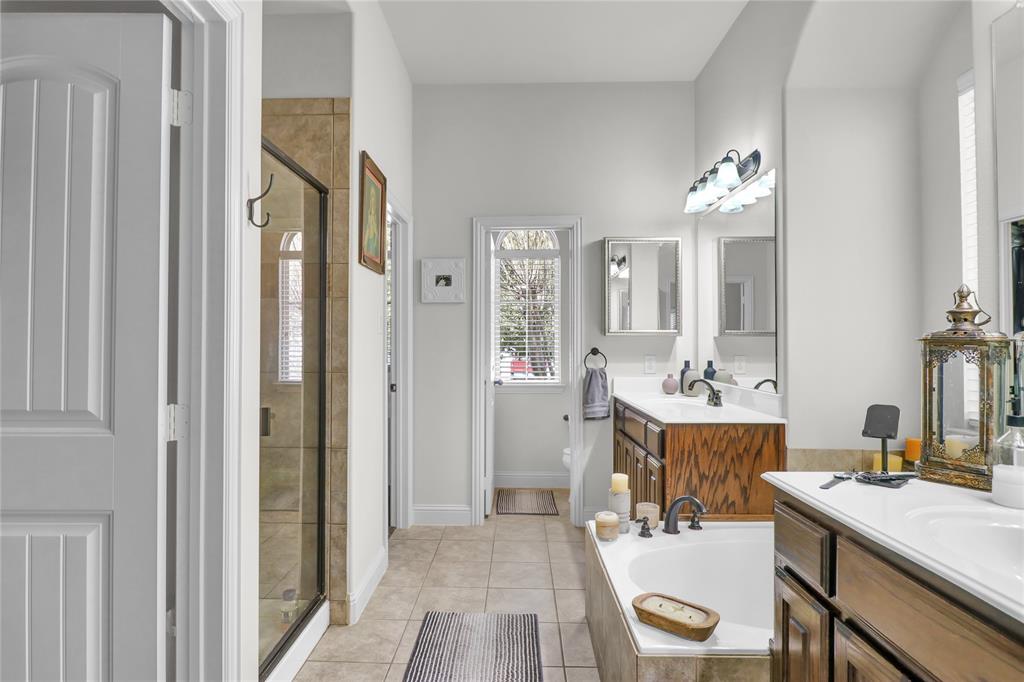 The private primary suite includes a generous ensuite bathroom complete with dual vanities, a relaxing garden tub, and a separate shower—your own personal retreat after a long day. Enjoy quiet evenings on the covered patio, perfect for sipping tea or relaxing with friends.