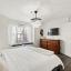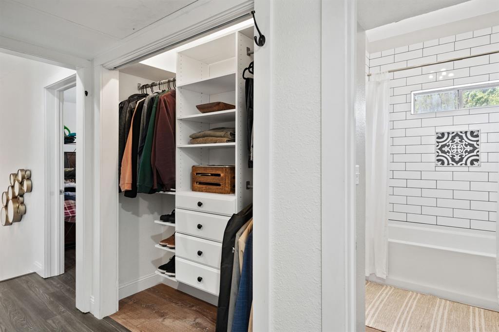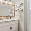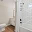 A front flex room works well as a dining area or home office. Upstairs you'll find two spacious bedrooms with upgraded lighting. The primary includes a cozy sitting nook with hidden storage, while the second bedroom and bath both feature vaulted ceilings. The bathroom includes a large tiled tub and shower combo with accent soap niche.