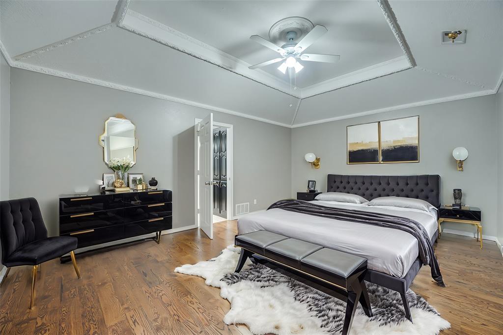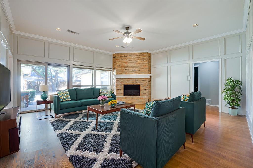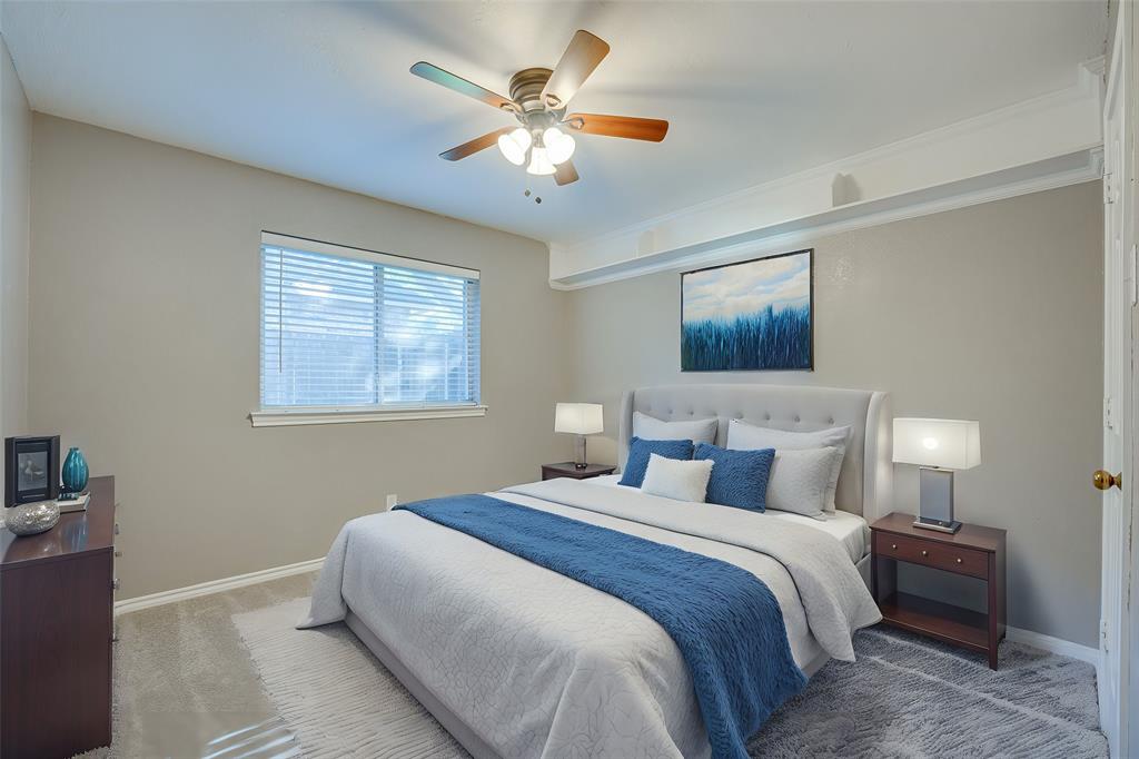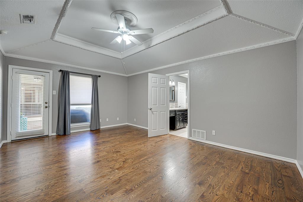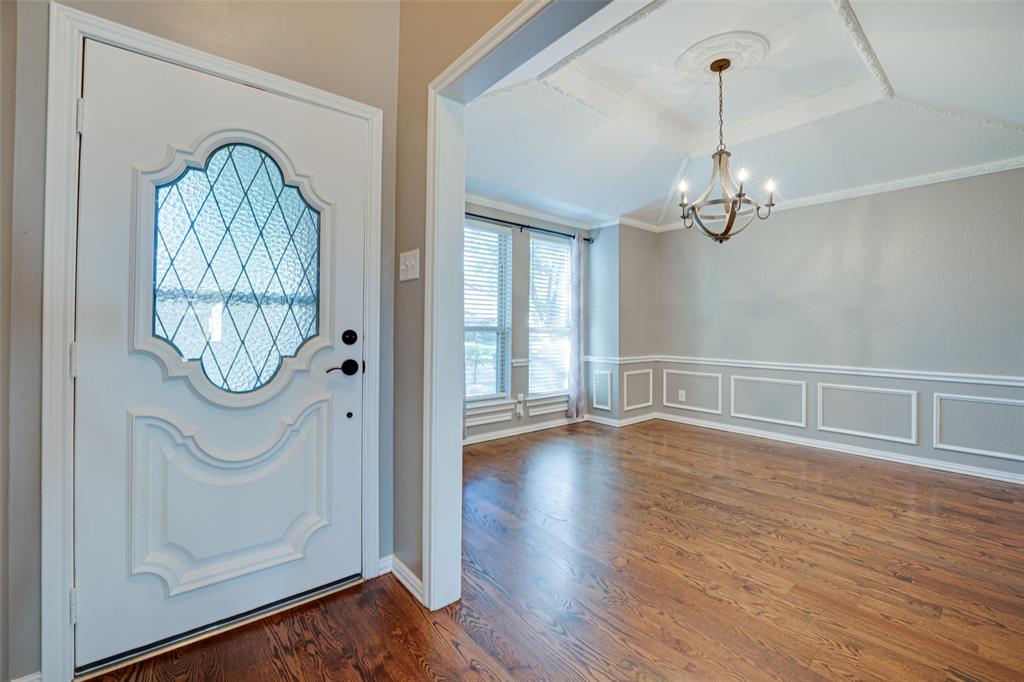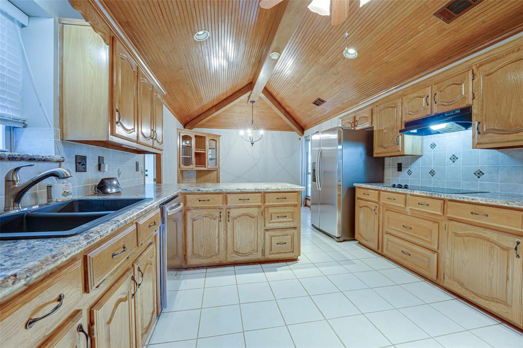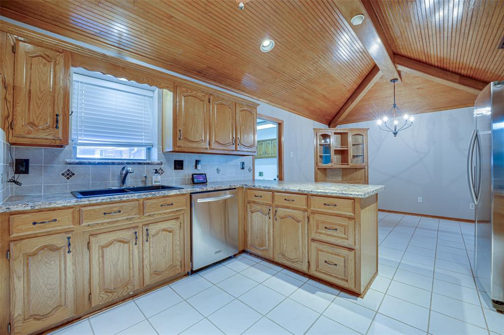 Spacious and full of charm, this single-story home offers comfort, character, and convenience—all on a quiet street near Lake Ray Hubbard. With 4 bedrooms and 3 full baths, there’s room for everyone and every occasion. Soaring ceilings, warm wood floors, and a cozy brick fireplace create an inviting living space, while the kitchen stands out with a vaulted wood ceiling, abundant cabinetry, updated lighting, and a breakfast nook for everyday meals. A formal dining room adds flexibility for entertaining or a home office setup. The well-maintained interior features recently stained real wood floors and new carpet in all bedrooms. The private primary suite includes exterior access, a custom closet, and a spacious ensuite bath. A standout feature is the oversized laundry room—complete with sink, storage, and a walk-in shower—ideal for pets, projects, or extra clean-up space. Outside, enjoy mature trees, a covered patio, a fenced yard, and a storage building. Located in desirable Toler Bay with quick access to PGBT and I-30.