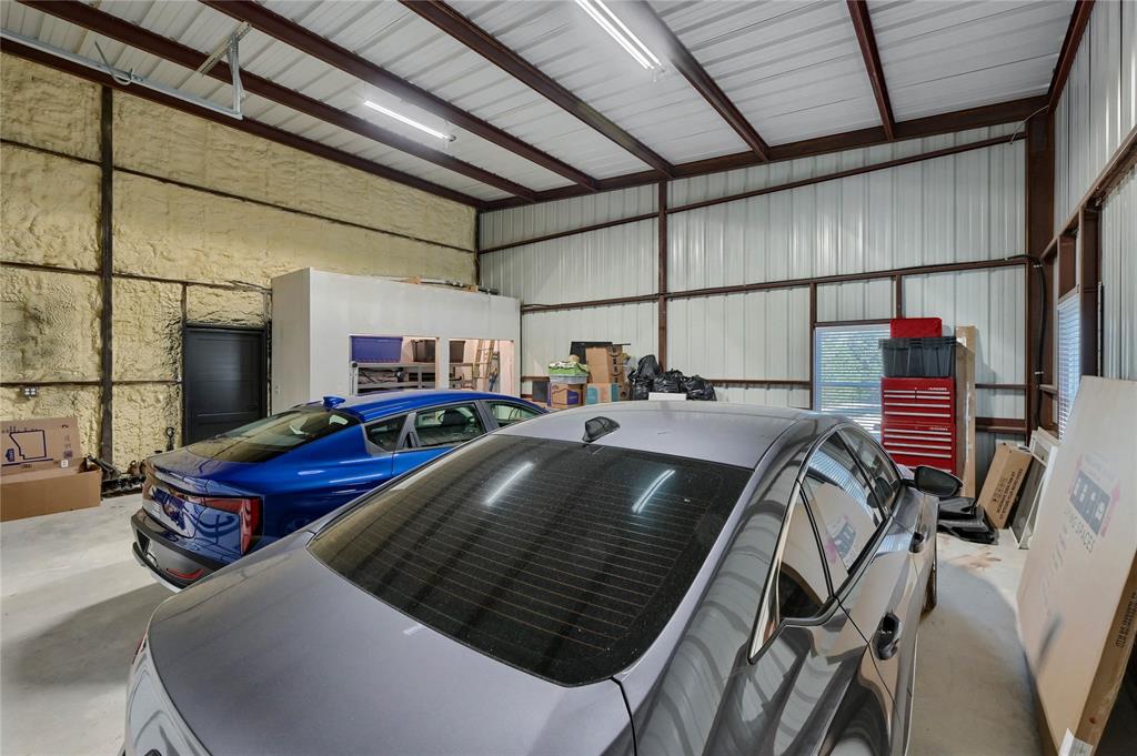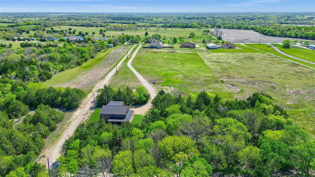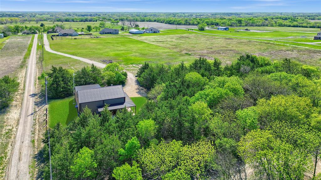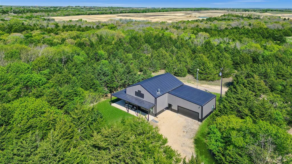 Tucked back in the woods on 5 beautifully manicured acres, this modern-style barndominium in Howe, Texas, offers the ultimate in privacy, functionality, and charm. A true hidden gem, the home is designed for both relaxation and practicality, with inviting wrap-around porches perfect for enjoying your morning coffee or unwinding with evening cocktails while taking in the peace and quiet of your private retreat. Inside, you'll be greeted by soaring vaulted ceilings and a striking floor-to-ceiling fireplace that anchors the open-concept living room and kitchen. The layout is ideal for entertaining or spending quality time with loved ones. The kitchen features gorgeous countertops, custom cabinetry, and a spacious walk-in pantry that provides ample storage. Every detail has been thoughtfully considered to blend modern comforts with country living. The private primary suite occupies the entire second floor and offers a true retreat. The oversized bedroom includes a spa-like en suite bathroom with an expansive walk-in shower and a massive walk-in closet. Downstairs, the additional bedrooms are generously sized and versatile, ready to accommodate family, guests, or home office needs. The utility-mudroom is both stylish and functional, featuring a built-in pet spa shower—perfect for furry family members. Attached to the home is a large shop-garage that provides plenty of room for vehicles, equipment, or hobbies, making this property as practical as it is picturesque. Located just minutes from Sherman and Texas Instruments, and with quick access to McKinney and the DFW Metroplex, you’ll enjoy country living with city convenience. This is more than a home—it’s a lifestyle. Come experience it for yourself.